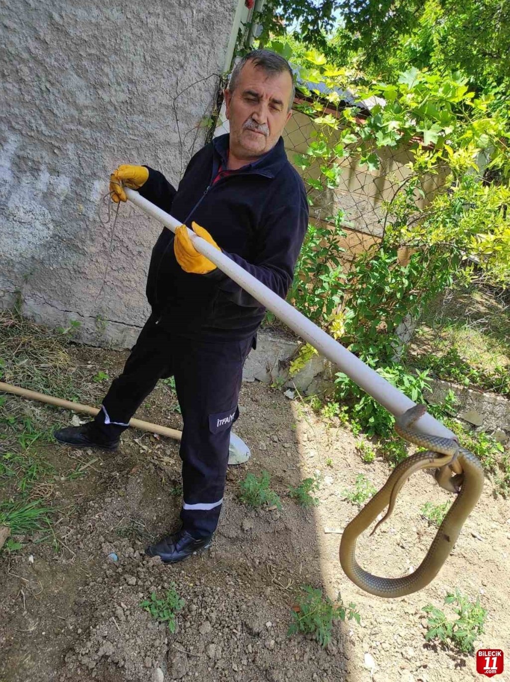 Bozüyük’te 3 farklı noktada yapılan ihbarlarına müdahale eden Bozüyük Belediyesi İtfaiye Müdürlüğü personelleri, yılanlara zarar vermeden etkisiz hale getirerek yaşam alanından uzak bir noktada doğaya bıraktı.