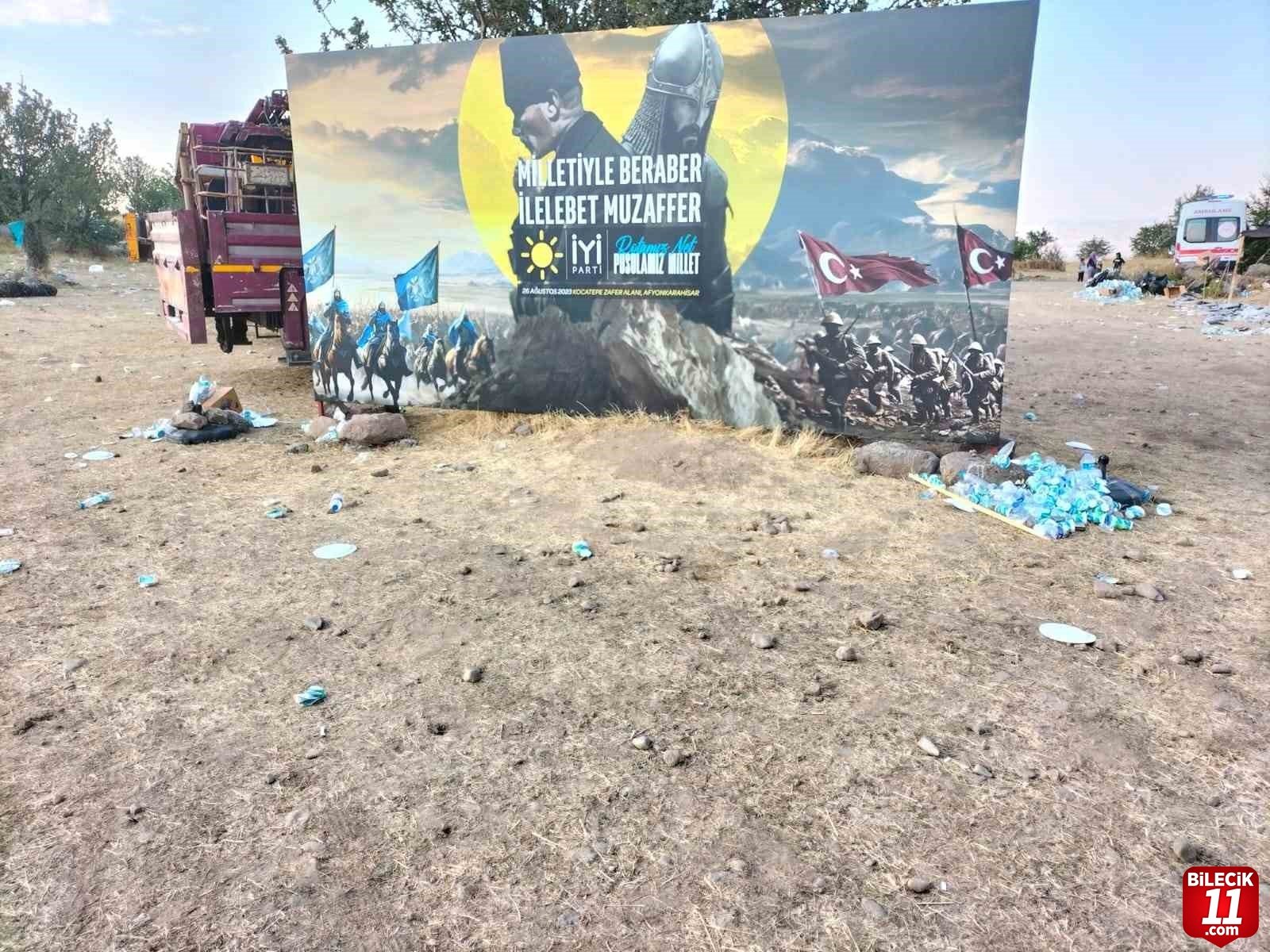 İYİ Parti Genel Başkanı Meral Akşener’in Büyük Taarruz’un yapıldığı Kocatepe’deki programı sonrası çöplerden dolayı ortaya çıkan çevre kirliliği sosyal medyada tepkilere neden oldu.