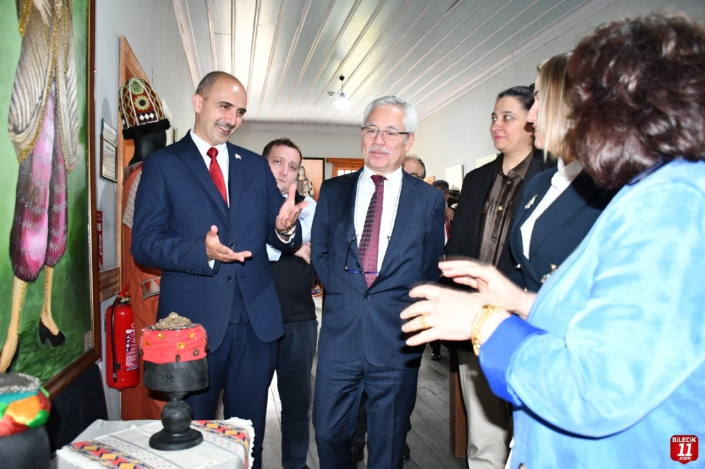 Vali Aygöl ve eşi Nazlı Aygöl, sergilenen eserlerden duydukları memnuniyeti dile getirirken, 2026 yılının UNESCO tarafından Şeyh Edebali’yi Anma Yılı olarak ilan edilmesiyle Bilecik’te birbirinden önemli programlar düzenleneceğini ifade etti.