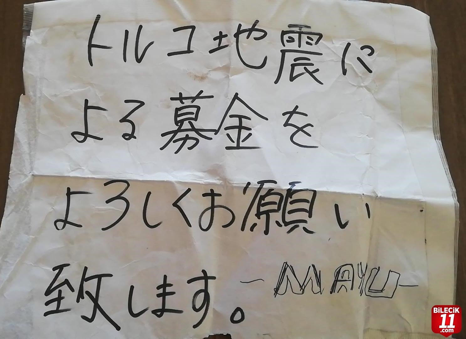 Gönderdikleri zarfın üzerine el yazıları ile "Türkiye’deki Depremzedeler İçin Bağışımızdır" yazan Mayu ve arkadaşlarının, yardımın ulaşmasında katkısı olanları da unutmayarak "Teşekkür Ederiz" şeklinde not ekledikleri görüldü.