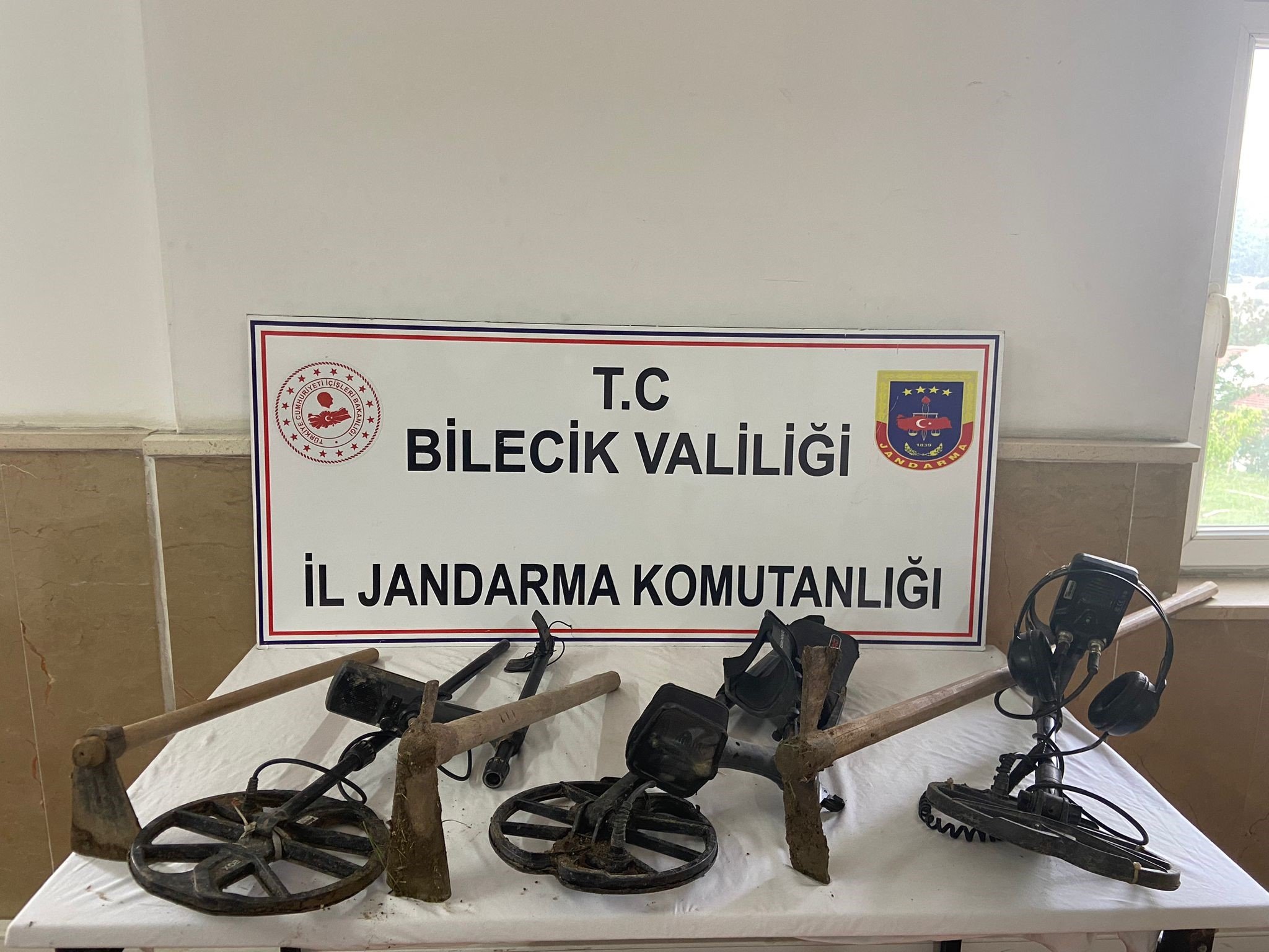 Bu kapsamda, Bilecik İl Jandarma Komutanlığı ekiplerince yapılan operasyonda B.Y., S.Ö. ve R.D. isimli (3) şüpheli şahıs suçüstü yakalandı. Şahıslar ile birlikte kazı esnasında kullanılan (3) adet detektör ve (3) adet kazma ele geçirildi.