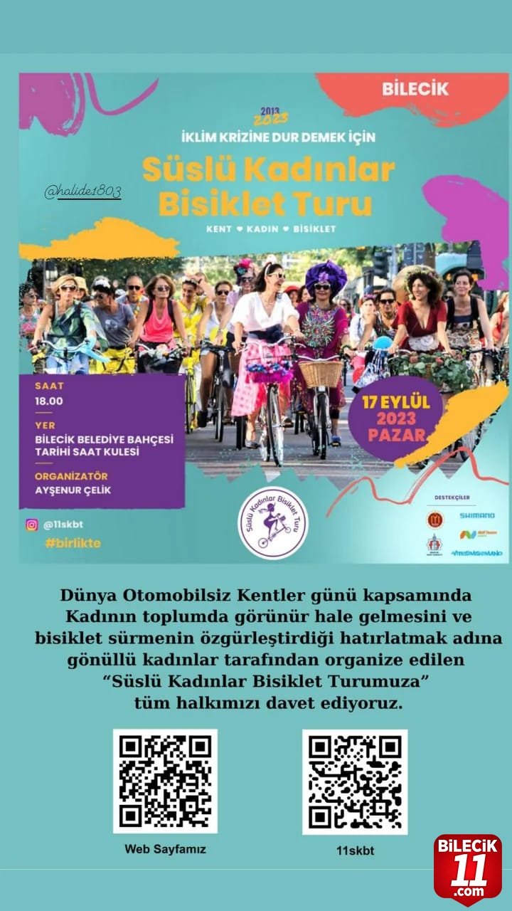 Organizatörlüğünü Ayşenur Çelik’in yaptığı etkinlik, 17 Eylül 2023 (Pazar) günü saat 18.00’de Bilecik Belediyesi bahçesinden başlayacak.