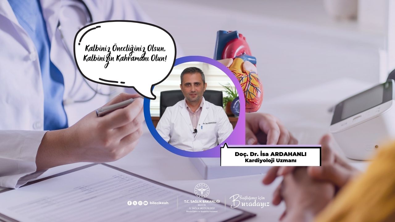 Kardiyoloji Uzmanı Doç. Dr. İsa Ardahanlı açıklamasının devamında, “Bu kapsamda, aile hekimlerimizce 40 yaş ve üstü bireylerde risk hesaplaması yapılarak on yıl içerisinde geçirebileceğimiz kardiyovasküler hastalık riski ölçülmelidir. Herkesi kalp sağlığı için eyleme geçmeye, kayıtlı oldukları aile hekimlerini düzenli olarak ziyaret etmeye, periyodik tarama ve izlemlerini yaptırmaya davet ediyoruz. Kalbimiz önceliğimiz olsun, kalbinizin kahramanı olun” dedi.