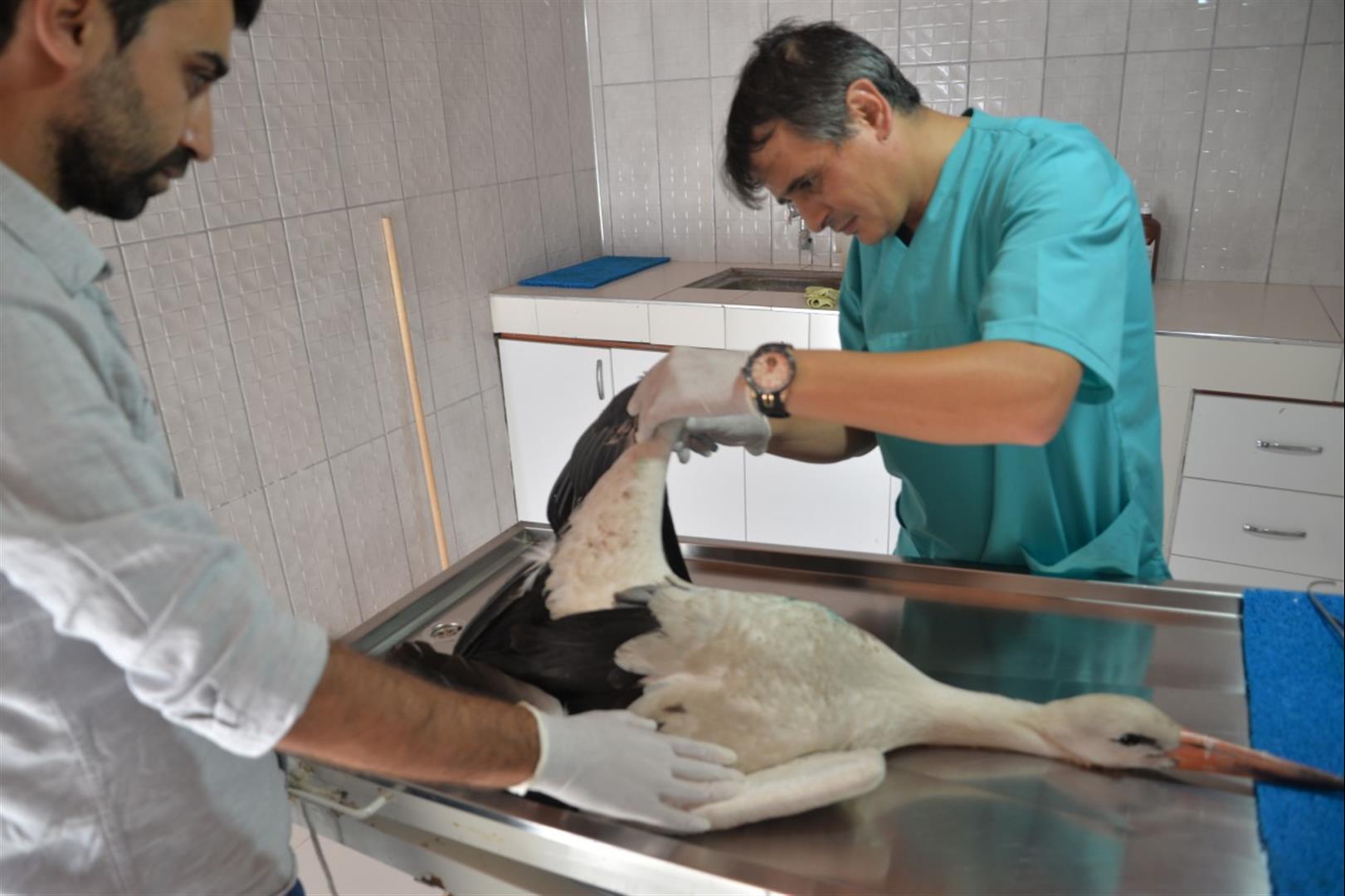 Gölpazarı ilçesinden getirilen yaralı leylek, tedavi altına alındı.
