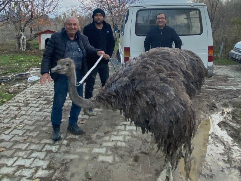Deve kuşunun çiftlikten kaçtığını belirten sahibi, bulunmasını sağlayan belediye ekiplerine teşekkür etti. – İHA