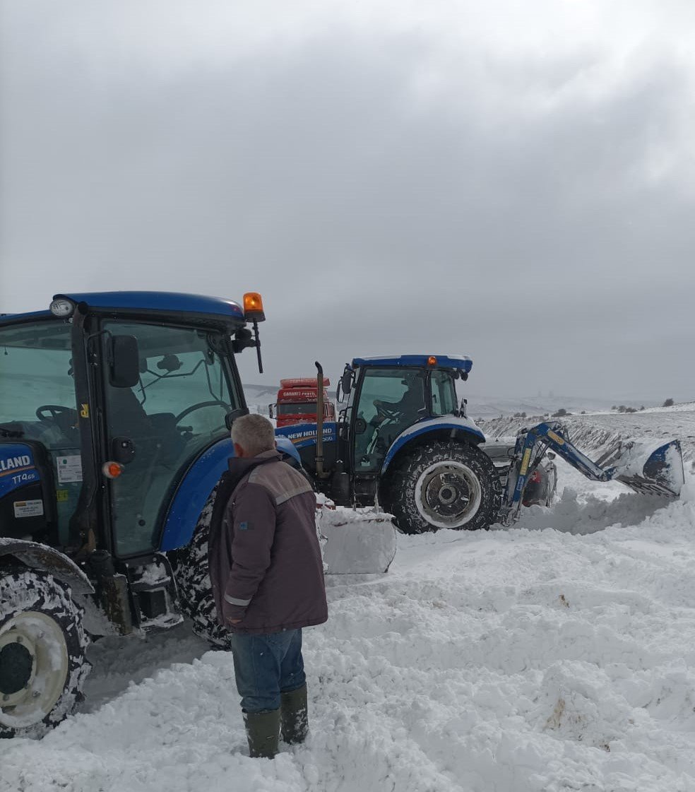 Köy muhtarları ve köylüler, traktörlerle yolu açtı. Yolun açılması sonucu sürücüler, yollarına devam etti.