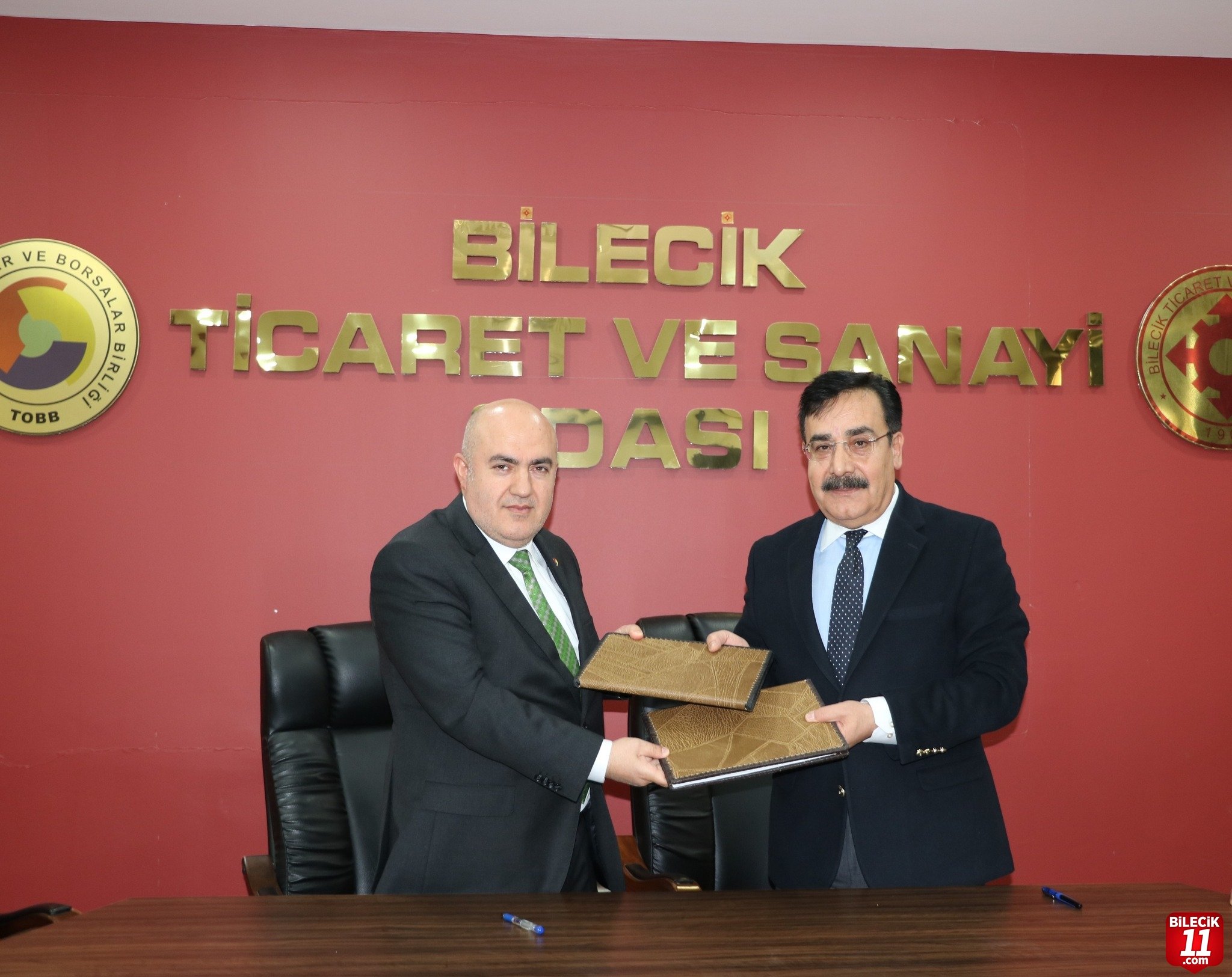 Bilecik Ticaret ve Sanayi Odası Yönetim Kurulu Başkanı Mehmet Ergün ve Bilecik Çalışma ve İş Kurumu İl Müdürü Üzeyir Yıldırım tarafından, Mesleki Eğitim Kursu ve İşbaşı Eğitim Programı (İEP) uygulanması Protokolü karşılıklı olarak imzalandı.