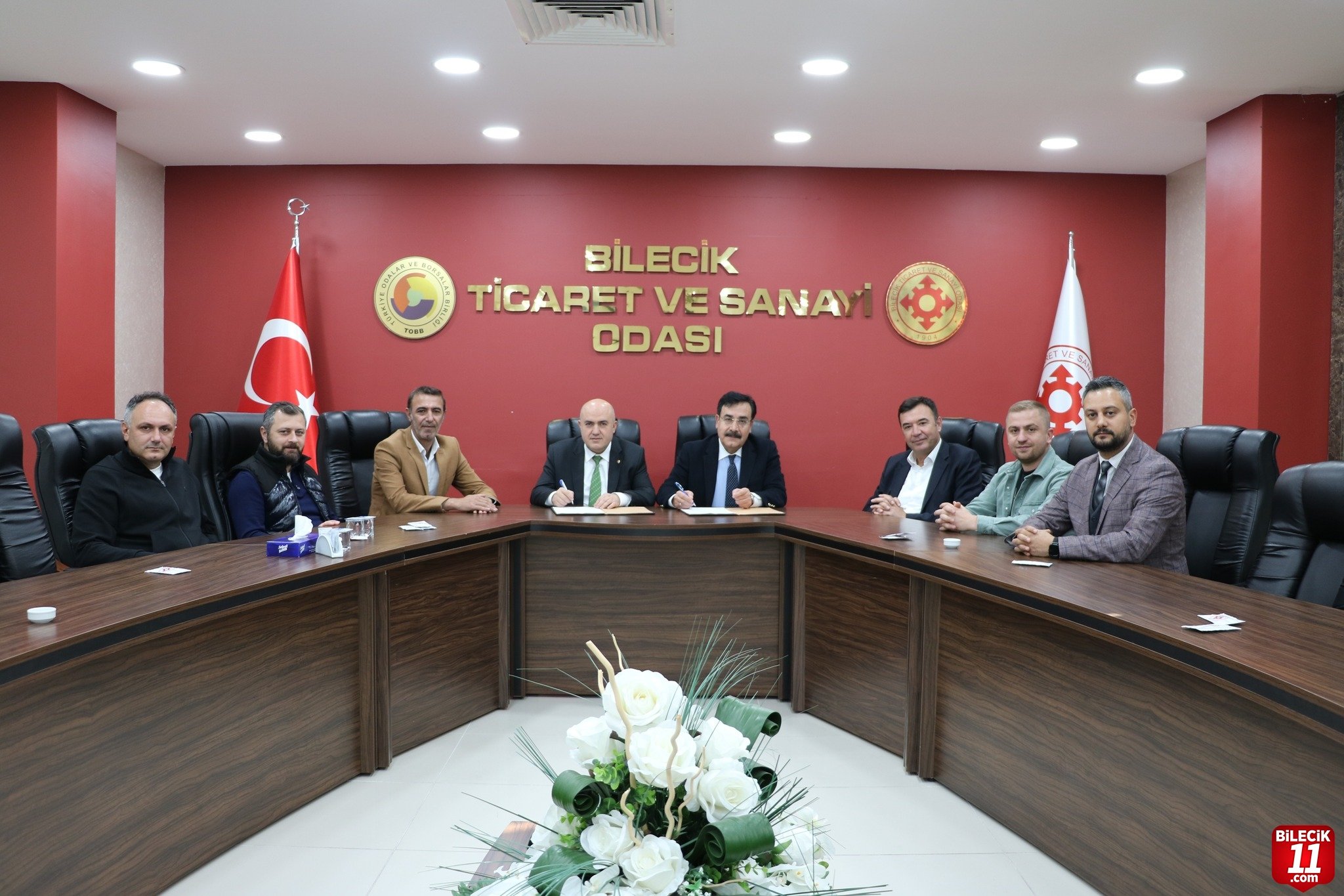Bilecik Ticaret ve Sanayi Odası Meclis toplantı Salonunda gerçekleşen protokolün imza törenine, Çalışma ve İş Kurumu İl Müdürü Üzeyir Yıldırım ve Bilecik Ticaret ve Sanayi Odası Başkanı Mehmet Ergün, Yönetim Kurulu Başkan Vekili Yüksel Gökçedağ, Yönetim Kurulu Başkan Yardımcısı Ercan Öztürk, Yönetim Kurulu Sayman Üyesi Murat Özçelik, Meclis Katip Üye Berat Emre Öztürk ve Genel Sekreter Doğan Gürkan Akyol katıldı.