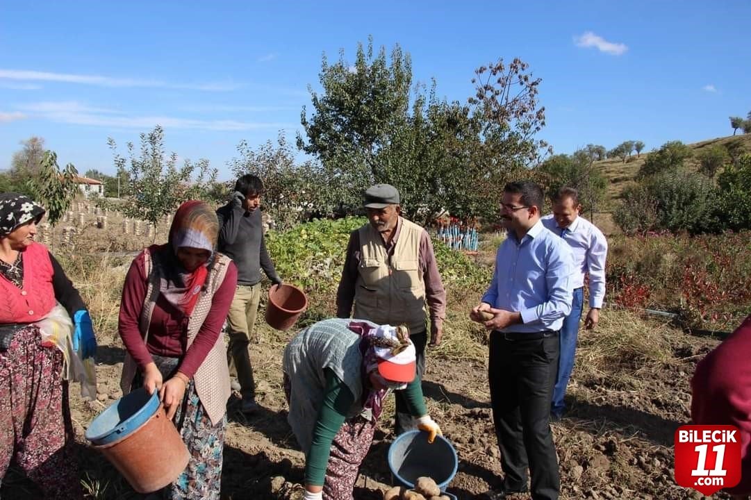 Afyonkarahisar Şuhut Kaymakamı Harun Reşit Han, ilçede devam eden patates hasadında çalışan kadınları ziyaret ederek onlarla patates topladı.
