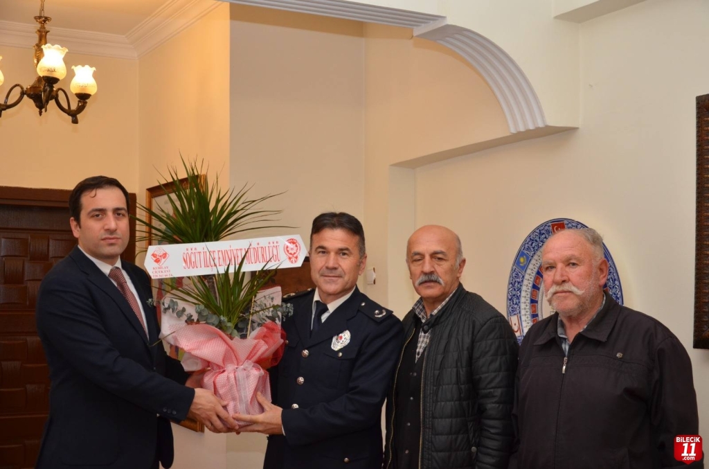 Türk Polis Teşkilatı’nın 180. Kuruluş yıl dönümü dolayısıyla Söğüt İlçe Emniyet Müdürlüğü personeli, İlçe Emniyet Müdür Vekili Coşkun Bartın ve emekli polis memurlarıyla birlikte,  Kaymakam Ömer Faruk Tuncer’i makamında ziyaret etti.
