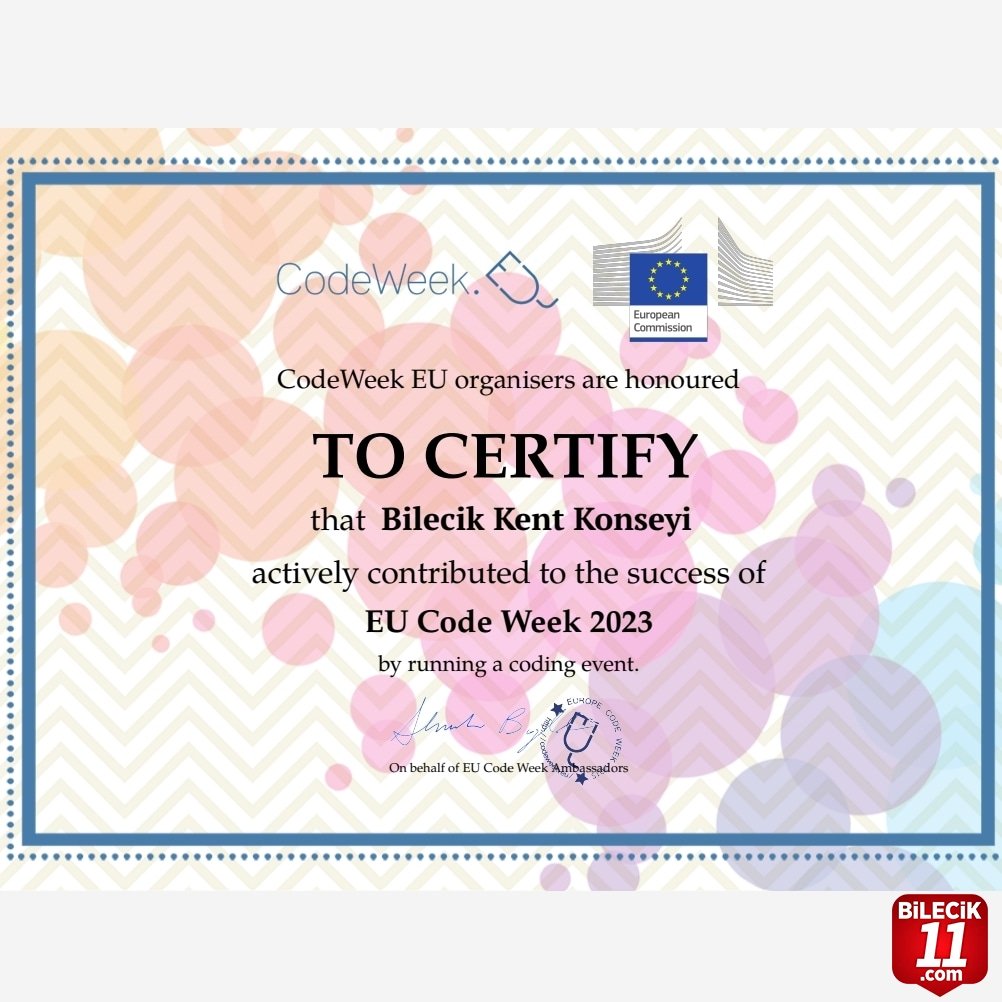 Ayrıca, düzenlenen etkinlik Bilecik Kent Konseyi’ne AB Kodlama Haftası Codeweek sertifikası kazandırdı.