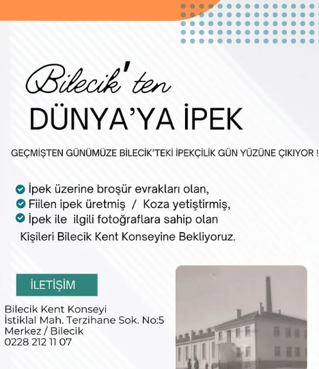 Bilecik Kent Konseyi tarafından geçmişten günümüze Bilecik’teki İpekçilik geleneğini gün yüzüne çıkarmak amacıyla önemli bir araştırma başlattı.