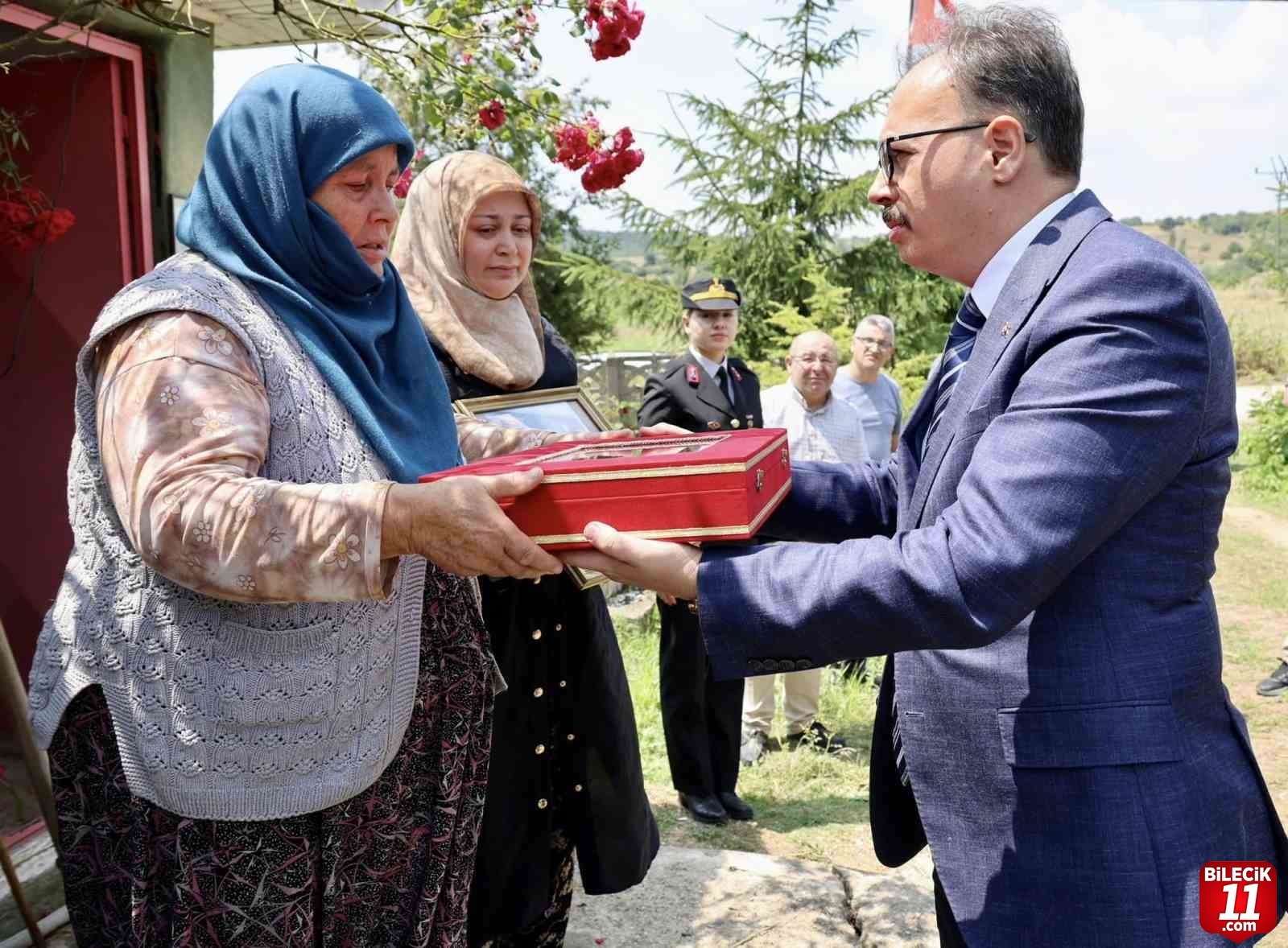 Ailesine ve sevenlerine baş sağlığı dileklerini ileten Vali Kızılkaya, aileye Türk Bayrağı takdim etti. – İHA