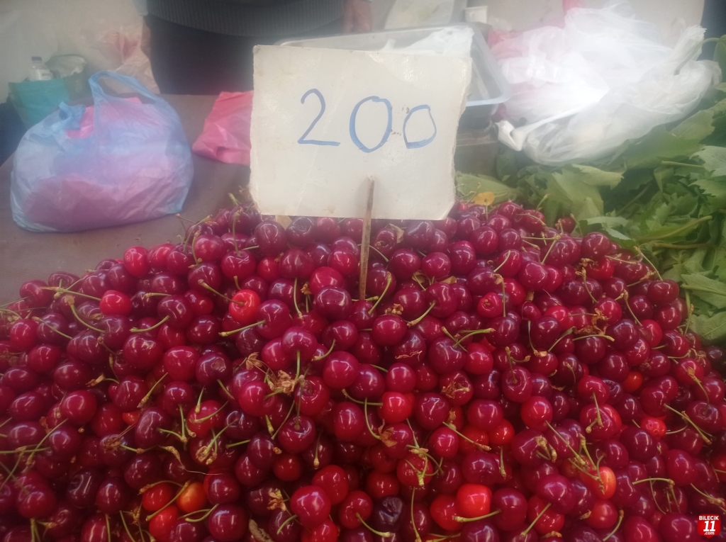 Bilecik’te Pazartesi günleri kurulan halk pazarında Kiraz 200 TL den satıldı.