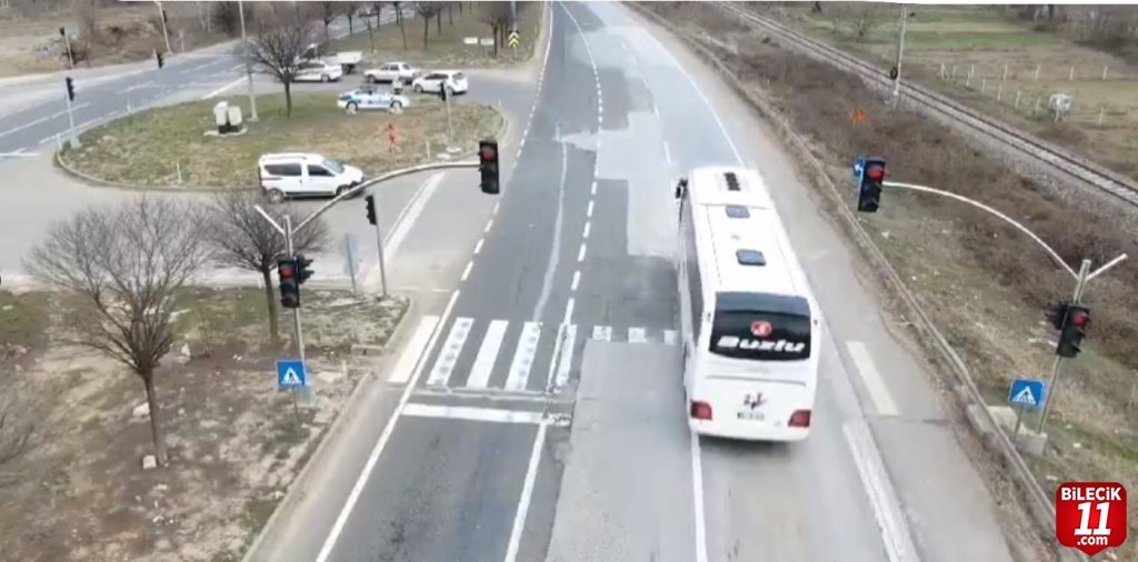 Bilecik Emniyet Müdürlüğü’ne bağlı Trafik Şube Müdürlüğünce drone ile tespit edilen 15 araç ve sürücüsü denetlendi.