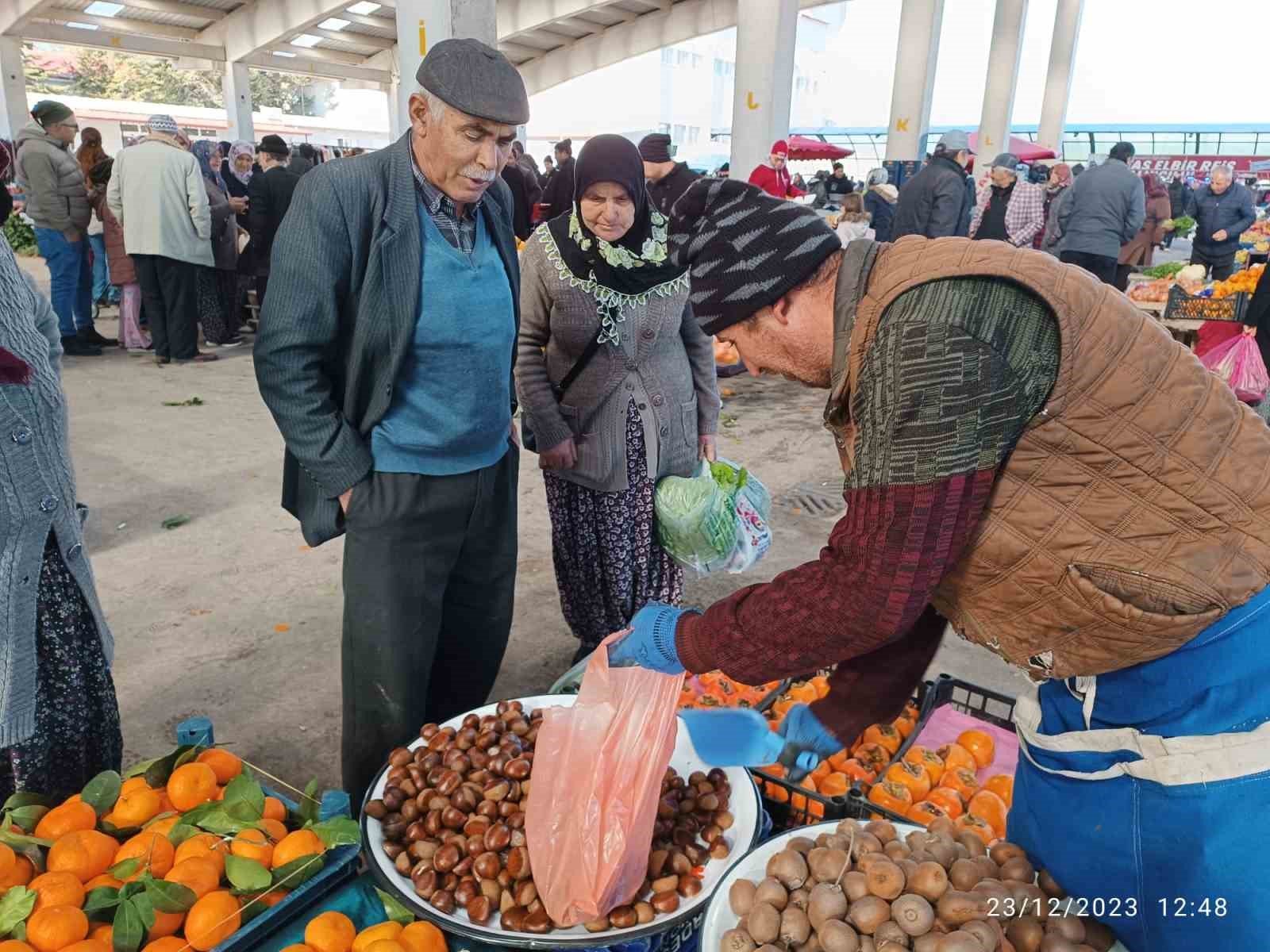 Pazara gelen vatandaşların ise fiyatını biraz yüksek gördükleri kestaneden genellikle yarım kilogram aldıkları gözlendi. – İHA