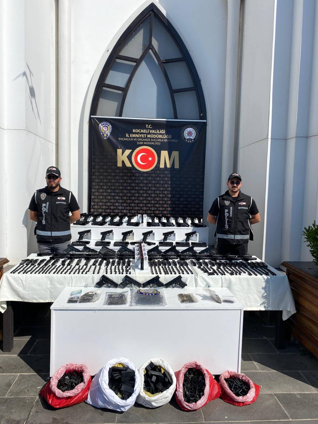 Araçlarda yapılan aramalarda, namlu takımına ait parçalar ile sürgü ve kabza takımları birbirinden ayrılmış ve montaj sonrası satışa hazır hale getirilebilen 101 ruhsatsız tabanca, bu tabancalara ait 299 şarjör ve muhtelif tabanca parçaları ele geçirildi.