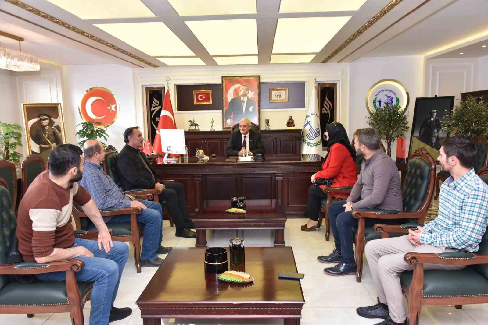 Bozüyük Belediye Başkanı Mehmet Talat Bakkalcıoğlu, Kokoreççiler Çarşısı Yardımlaşma ve Dayanışma Derneği Başkanı Ahmet Kuşoğlu ve derneğin yönetim kurulu üyeleri ile bir araya geldi.