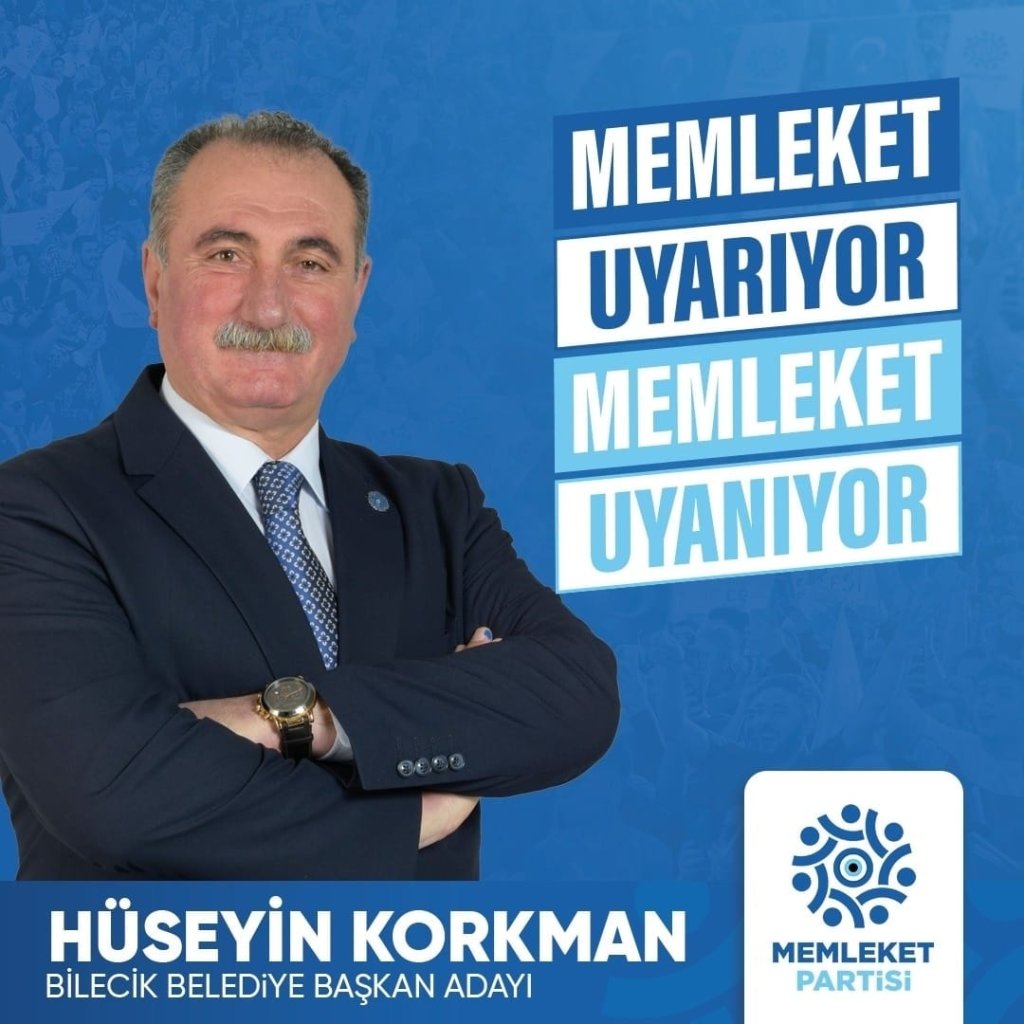 Memleket Partisi Bilecik Belediye Başkan adayı Hüseyin Korkman, seçim çalışmalarına devam ederken, “Seçenek var. Memleket sevdalısı halkın adamı Memleket Partisi Bilecik belediye başkan adayı Hüseyin Korkman var.” dedi.