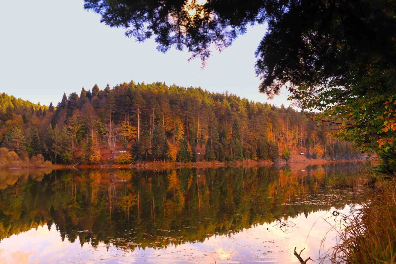 Bilecik’in Pazaryeri ilçesinde bulunan doğa manzarasıyla dört mevsim ziyaretçi akınına uğrayan Küçükelmalı Tabiat Parkı’nın sonbahar güzelliği hayran bırakıyor.