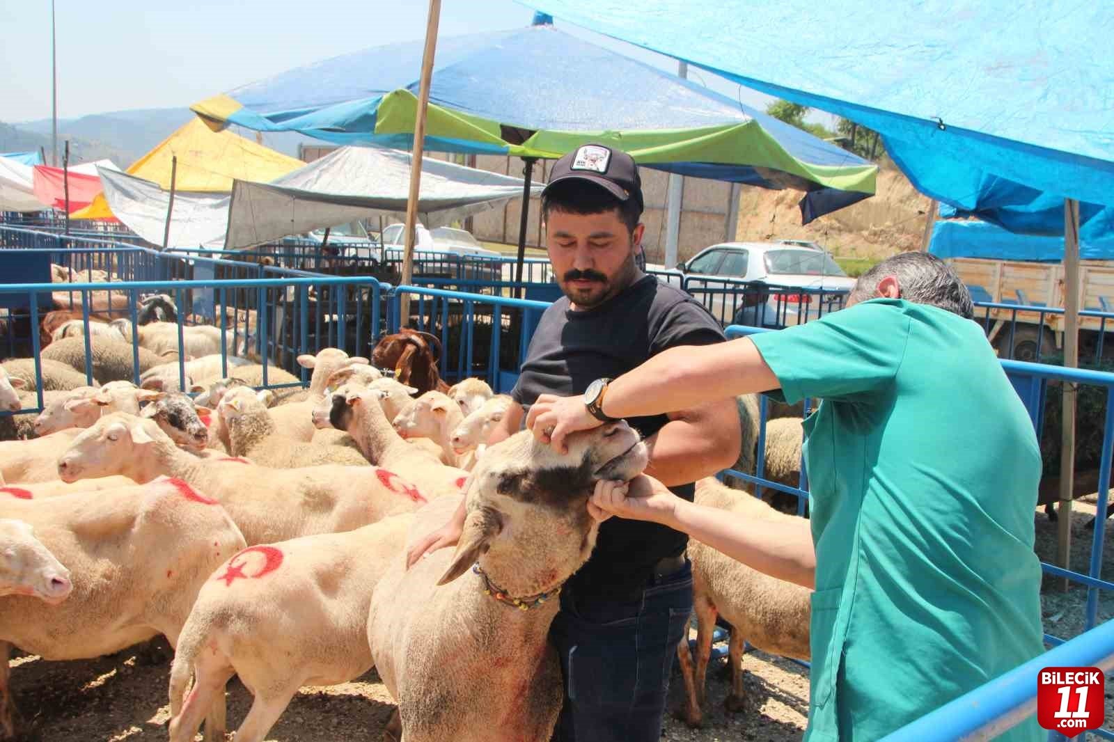 Bilecik’te kurulan hayvan pazarın başta koyun olmak üzere dişi hayvanlar ultrason cihazıyla hamilelik kontrolü yapıldı.