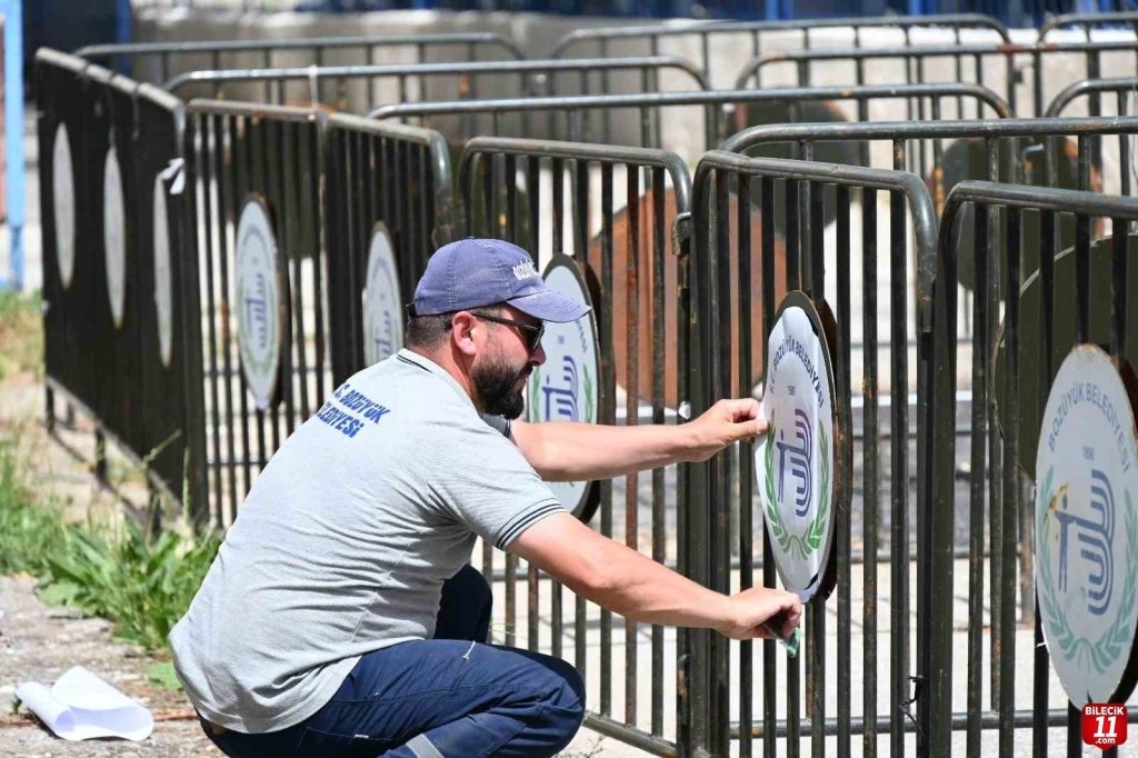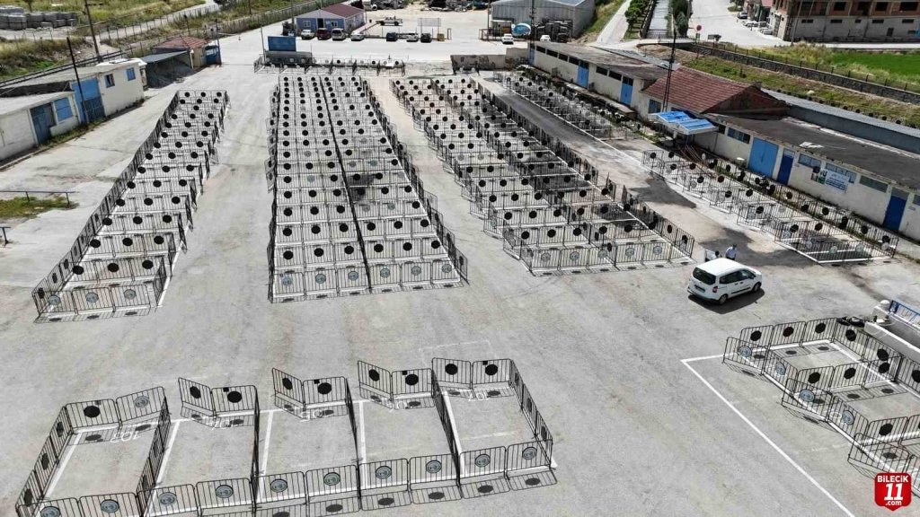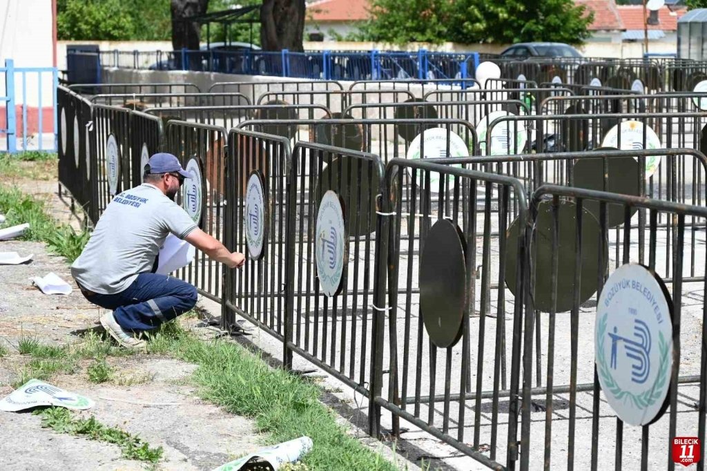 Bozüyük Belediyesi Mezbaha bahçesinde yapılan düzenlemelerde alan bariyerlerle bölünerek kurban satış bölümleri oluşturuldu.