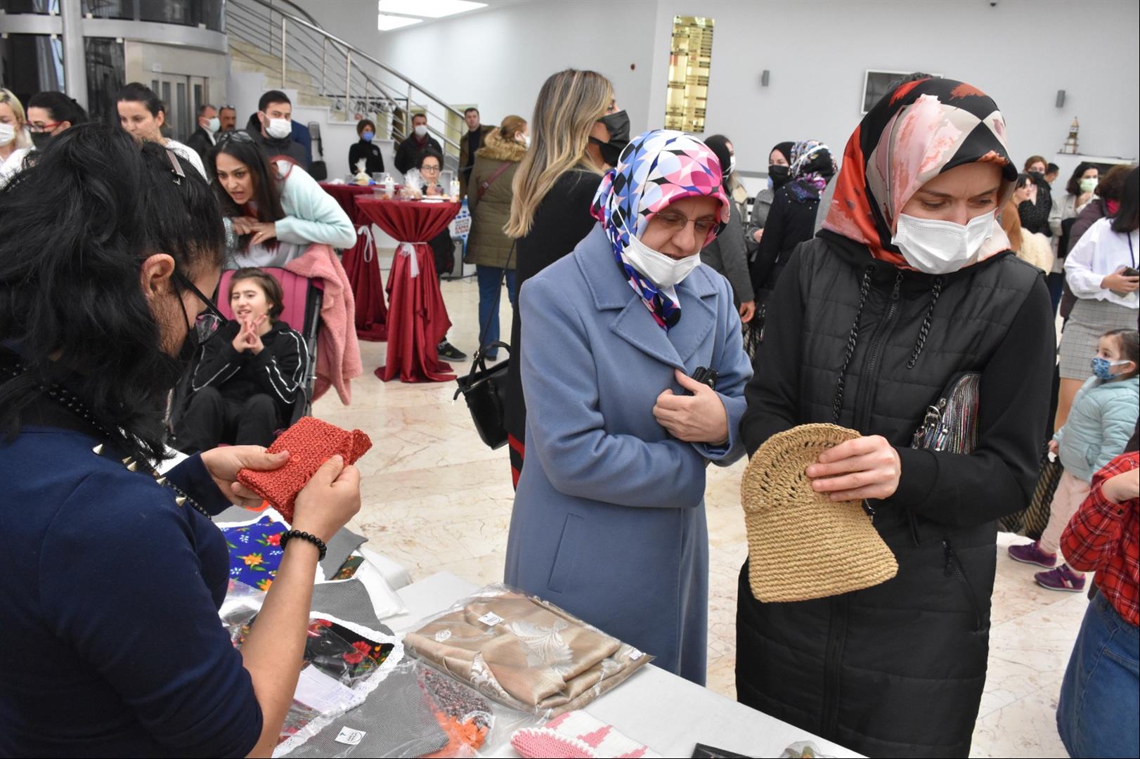 Bilecik’te yaşayan engelli bireyler ve annelerinin “Engelsiz Atölye”de yaptıkları ürünler kermeste satışa sunuldu.