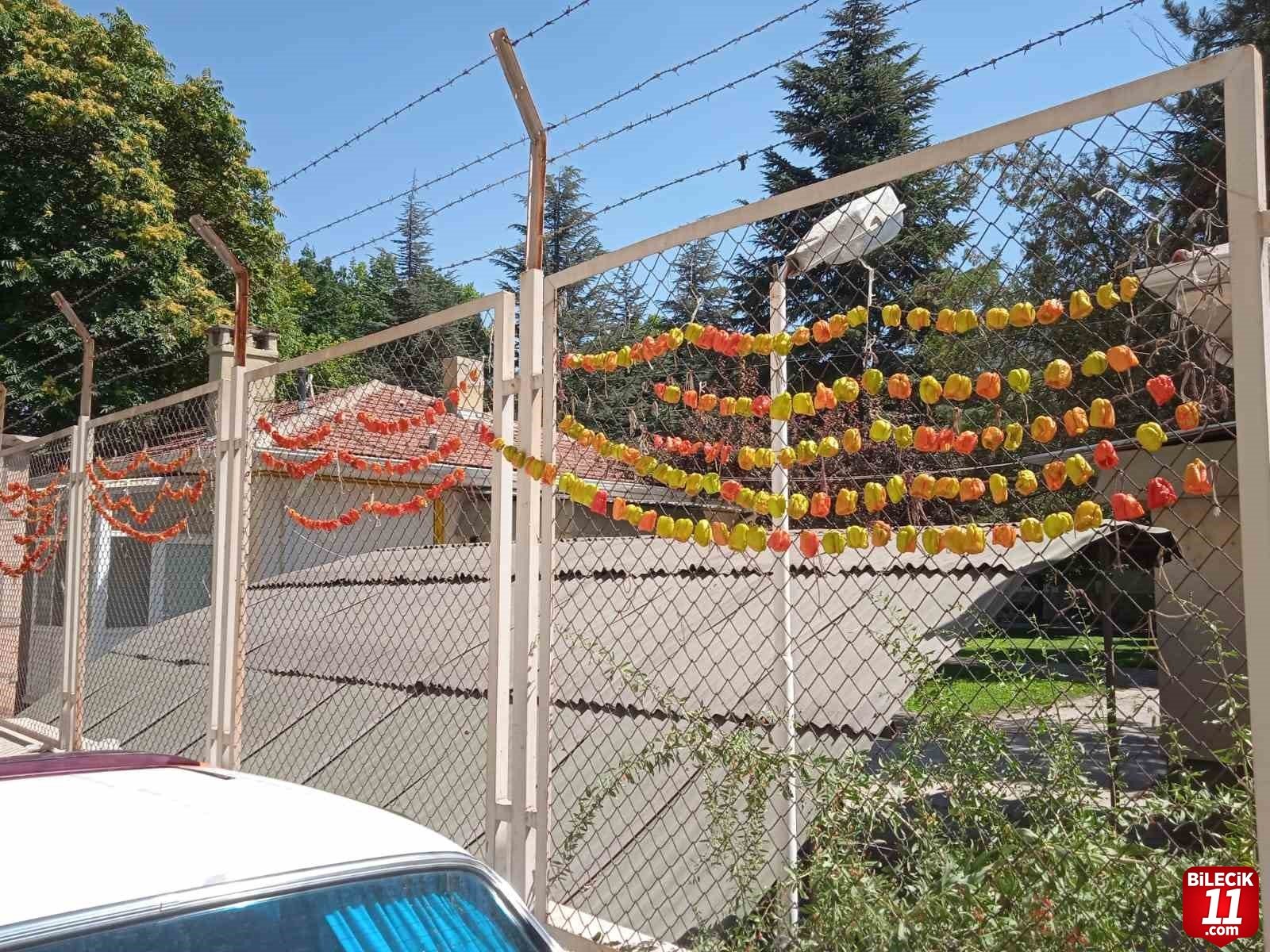 Eskişehir’de vatandaşlar kış sezonuna hazırlık amacıyla aldıkları biberleri çevredeki korkuluklara asarak kurutmaya devam ediyor.