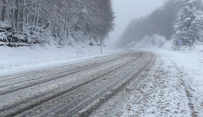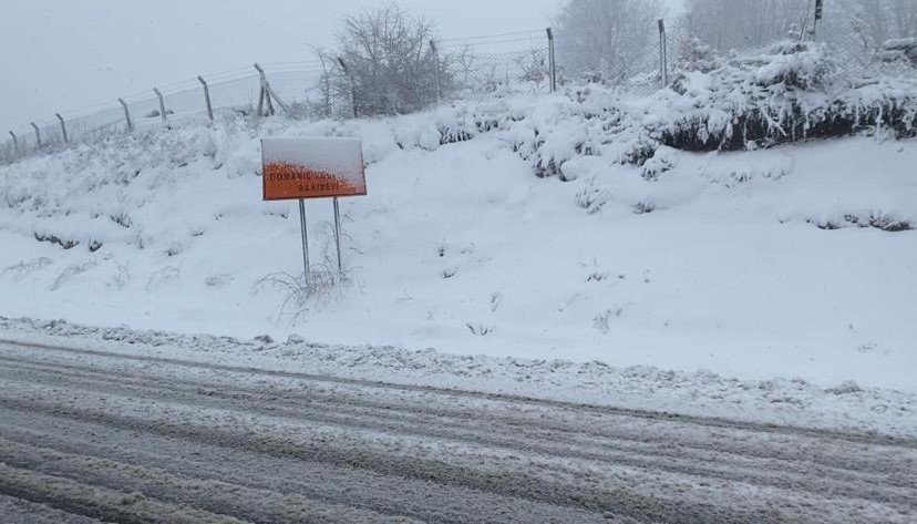 Trafik ekipleri de sürücüleri kar yağışı nedeniyle kayganlaşan yolda dikkatli olmaları konusunda uyardı. – İHA