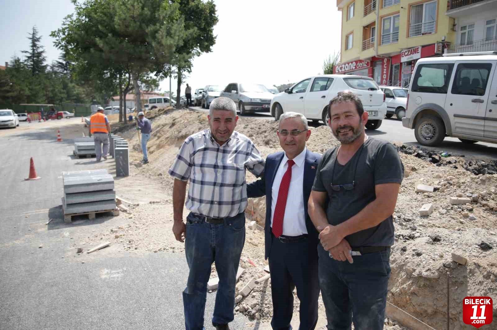 Belediye Başkanı Prof. Dr. Alim Işık, Kütahya Şehir Hastanesi bölgesinde ekiplerinin yürüttüğü kaldırım çalışmalarını inceledi.