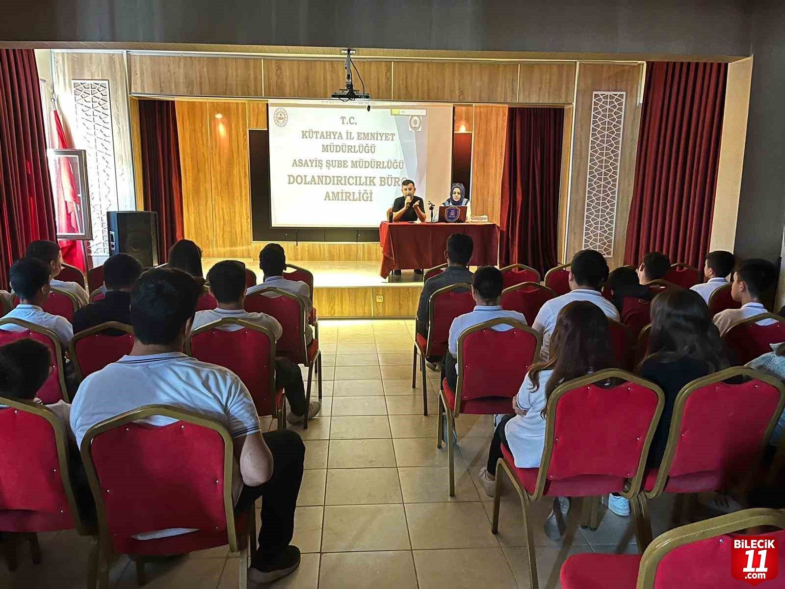 Kütahya’da Asayiş Şube Müdürlüğü Dolandırıcılık Büro Amirliğince, Germiyan Mesleki ve Teknik Anadolu Lisesinde öğretmen ve öğrencilere dolandırıcılık suçu ve dolandırıcılığa karşı alınması gereken önlemler konusunda bilgilendirildi.