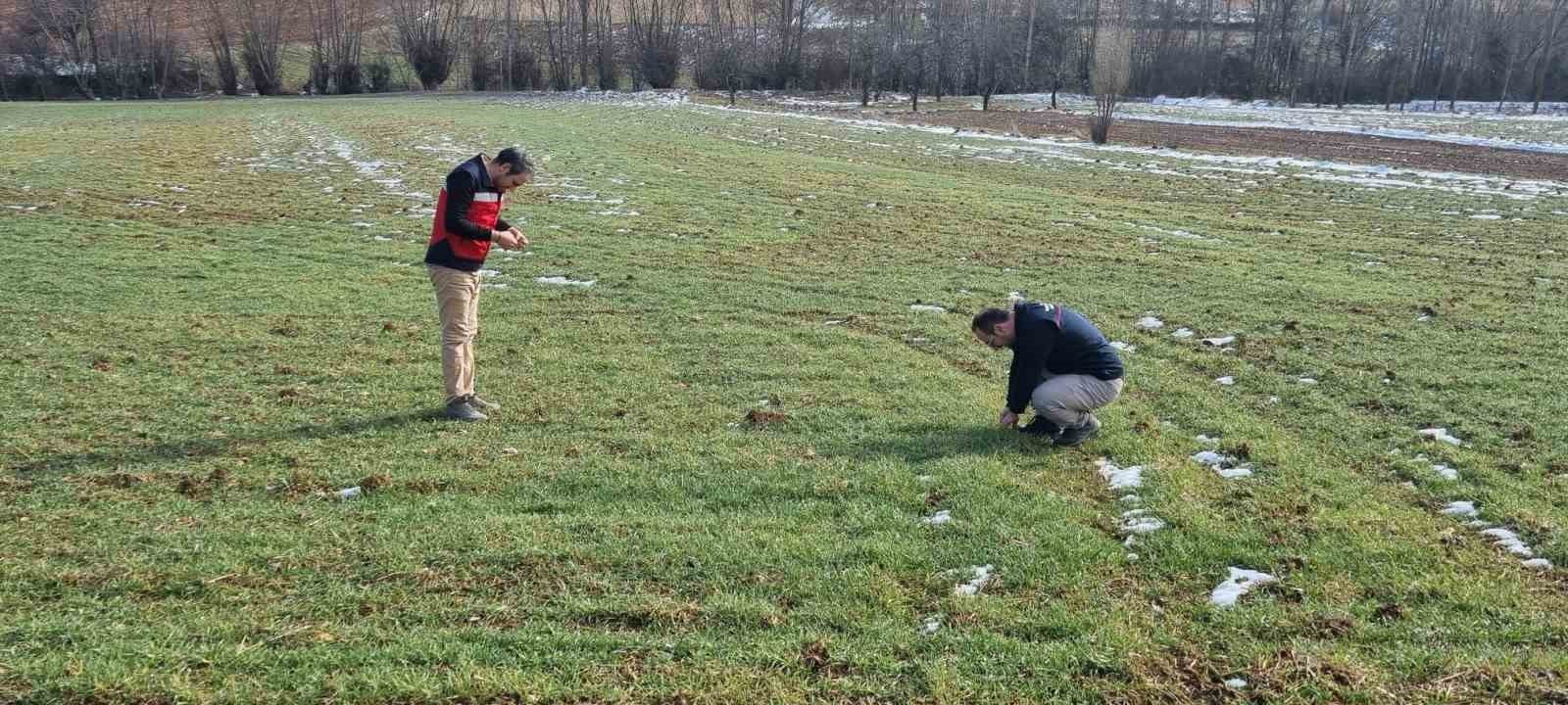 İl Tarım ve Orman Müdürlüğü Bitkisel Üretim ve Bitki Sağlığı Şubesi teknik personeli tarafından Tarım Arazilerinin Kullanımının Etkinleştirilmesi (TAKE) projesi çerçevesinde dağıtılan buğday tohumlarının arazide ekiliş ve çimlenme kontrollerine devam ediliyor. – İHA