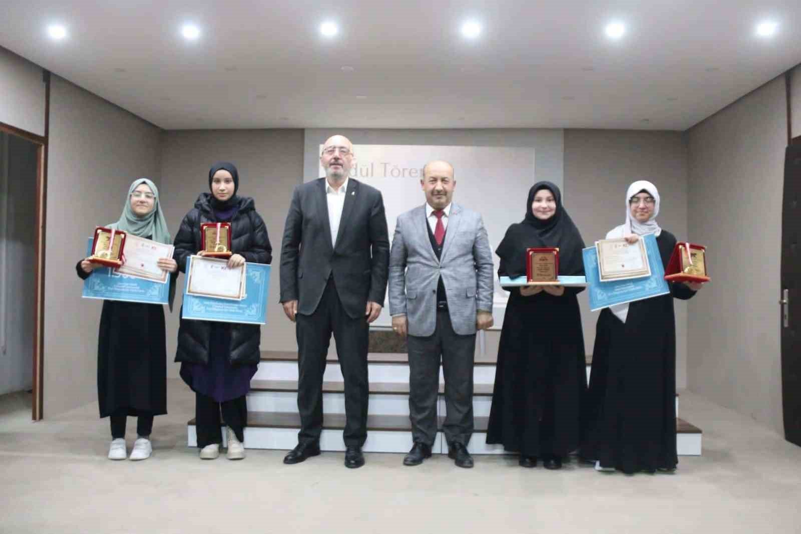 Yarışmalar sonunda dereceye giren öğrencilere ödülleri Milli Eğitim Müdürü Hasan Başyiğit, AK Parti İl Başkanı Mustafa Önsay, Şube Müdürü Rıdvan Acar ve Mehmet Zorlu tarafından verildi. – İHA