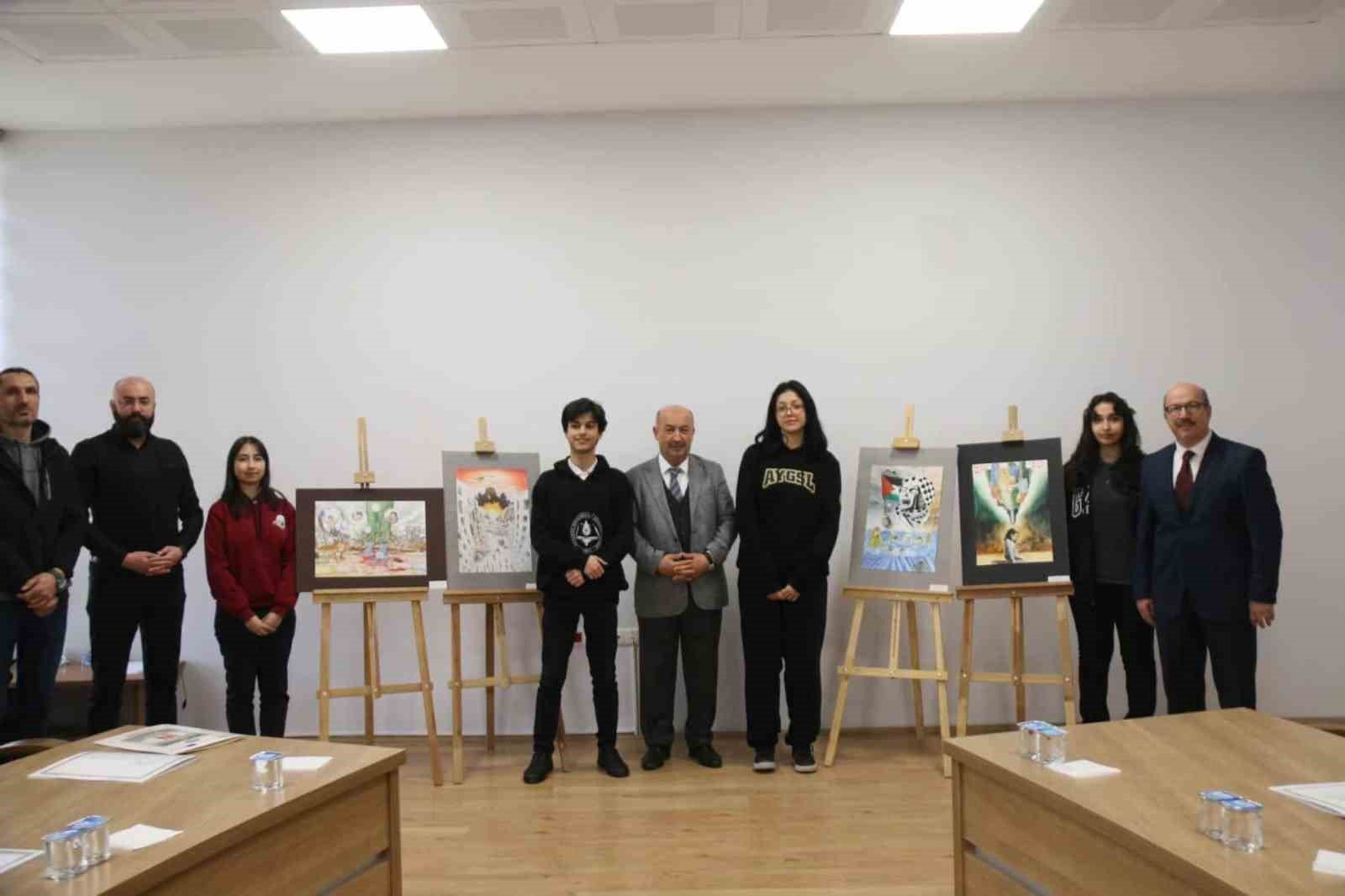 İsrail’in insanlık tarihinde eşine az rastlanır bir zulüm ile Gazze başta olmak üzere Filistin’deki halka yönelik gerçekleştirdiği soykırımı lanetlemek ve Türk gençliğinde bu konu hakkında bir farkındalık oluşturmak amacıyla tertip edilen yarışmada dereceye giren öğrencilere ödülleri Milli Eğitim Müdürü Hasan Başyiğit tarafından verildi.