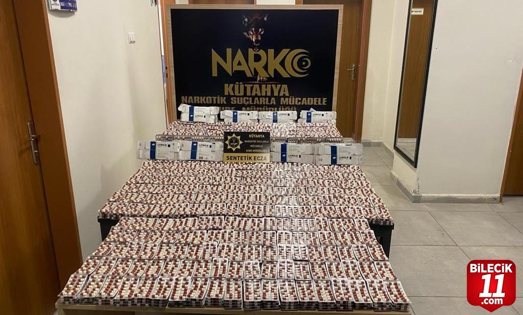 Kütahya İl Emniyet Müdürlüğü Narkotik Şube Müdürlüğü ekiplerince durdurulan şehirlerarası otobüste yolcu olarak bulunan şahsın bavulunda yapılan aramalarda, 19 bin 599 adet sentetik ecza maddesi ele geçirilirken, bu rakamın Kütahya tarihindeki en fazla sayıdaki sentetik ecza yakalaması olarak kayda geçtiği bildirildi.