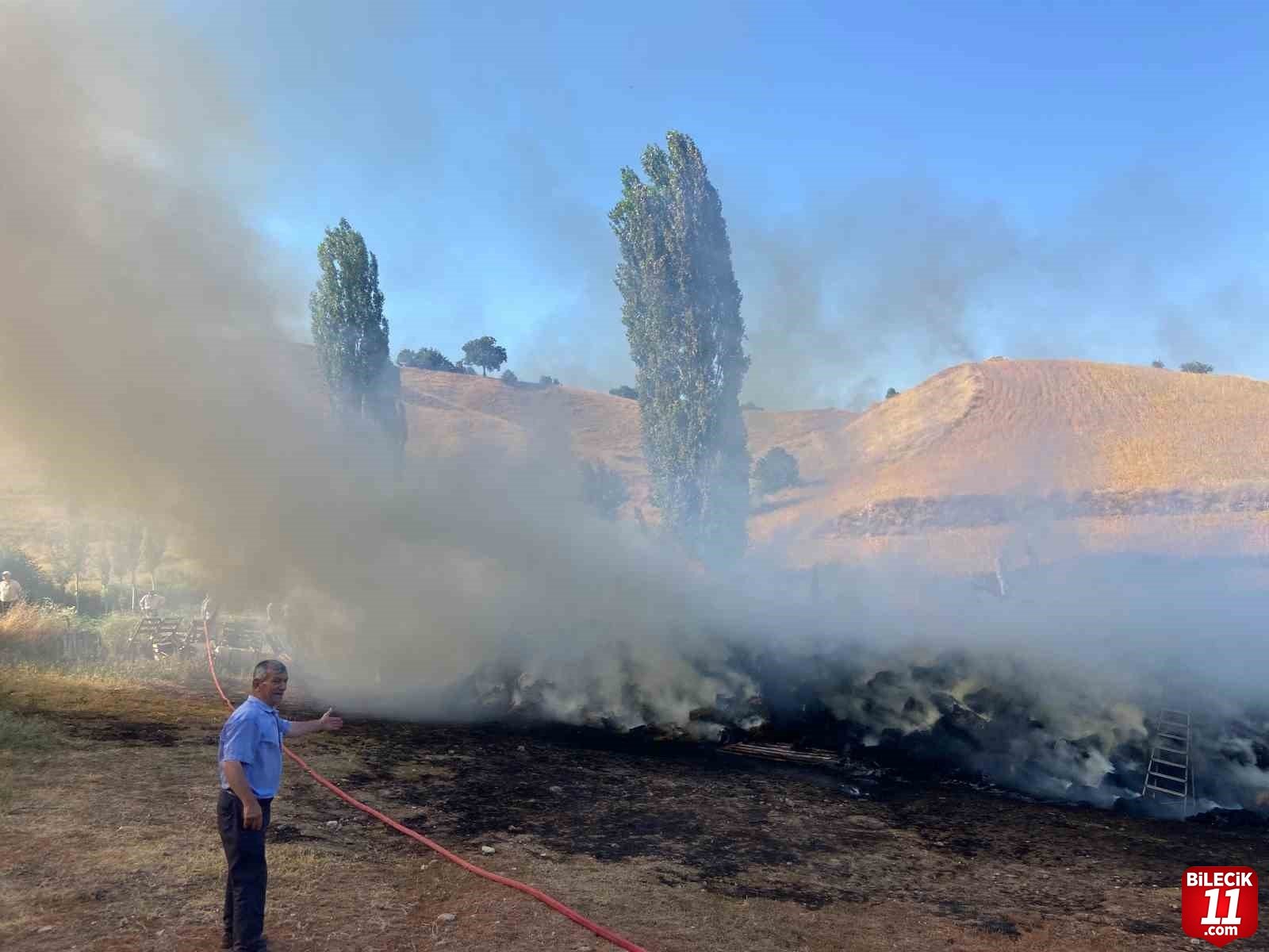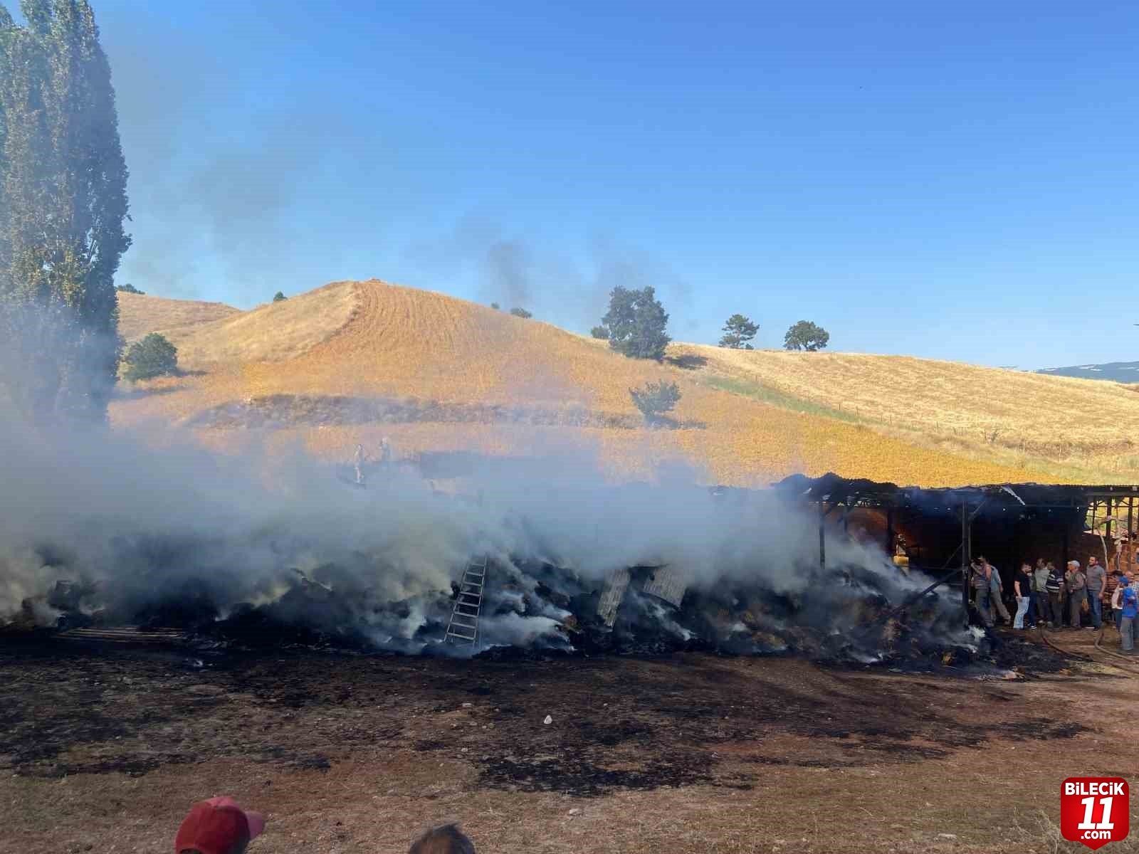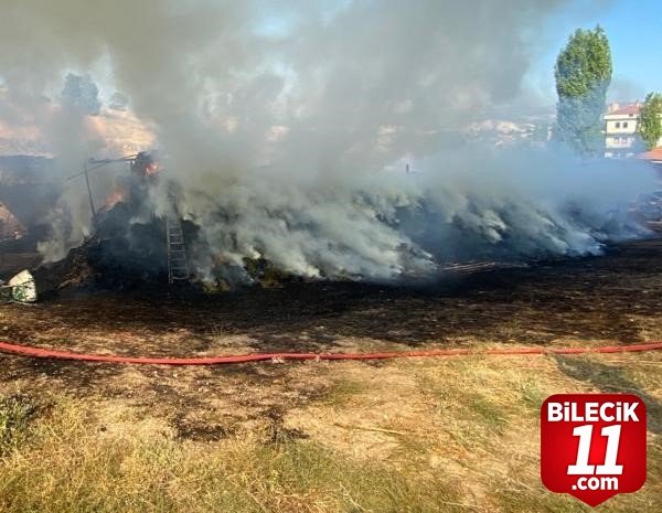 Kütahya’nın Hisarcık ilçesinde açık besi arazisinde çıkan yangında 3 büyükbaş hayvan telef oldu, bin 200 balya saman yandı.