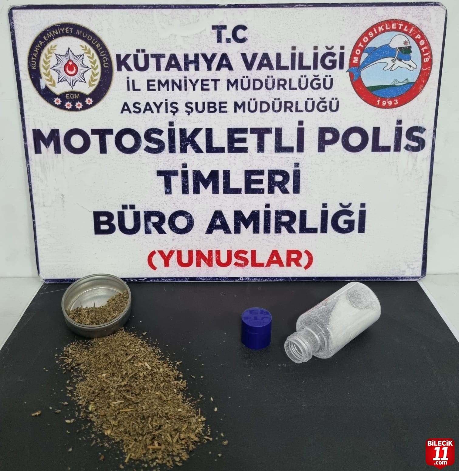 Kütahya’da Motosikletli Polis Timlerince 2 ayrı kişinin üzerinde uyuşturucu madde ele geçirildi.