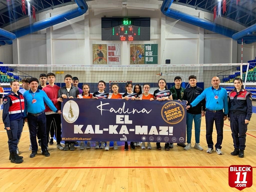 Kütahya İl Jandarma Komutanlığı Asayiş Şube Müdürlüğü Aile İçi Şiddetle Mücadele ve Çocuk Kısım Amirliğince Voleybol Turnuvasında sporcularla birlikte “Kadına EL KAL-KA-MAZ” pankartı açıldı.