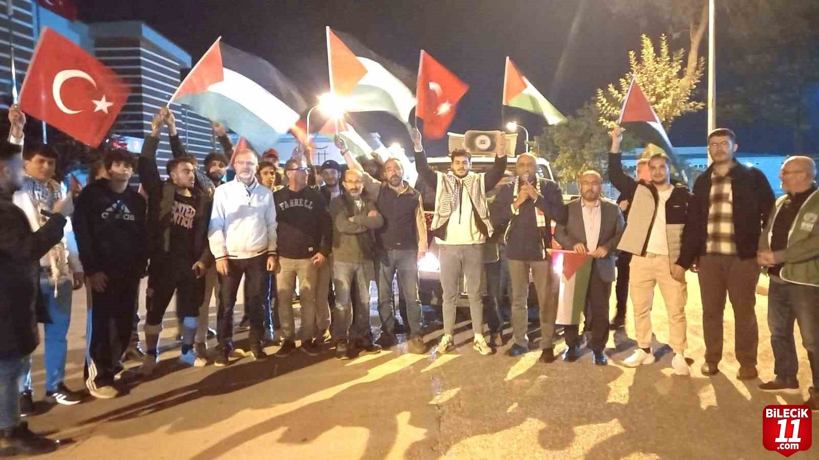 Türkiye ve Filistin bayraklarının birlikte taşındığı konvoyda işgalciler aleyhine, Filistin lehine sloganlar atıldı.