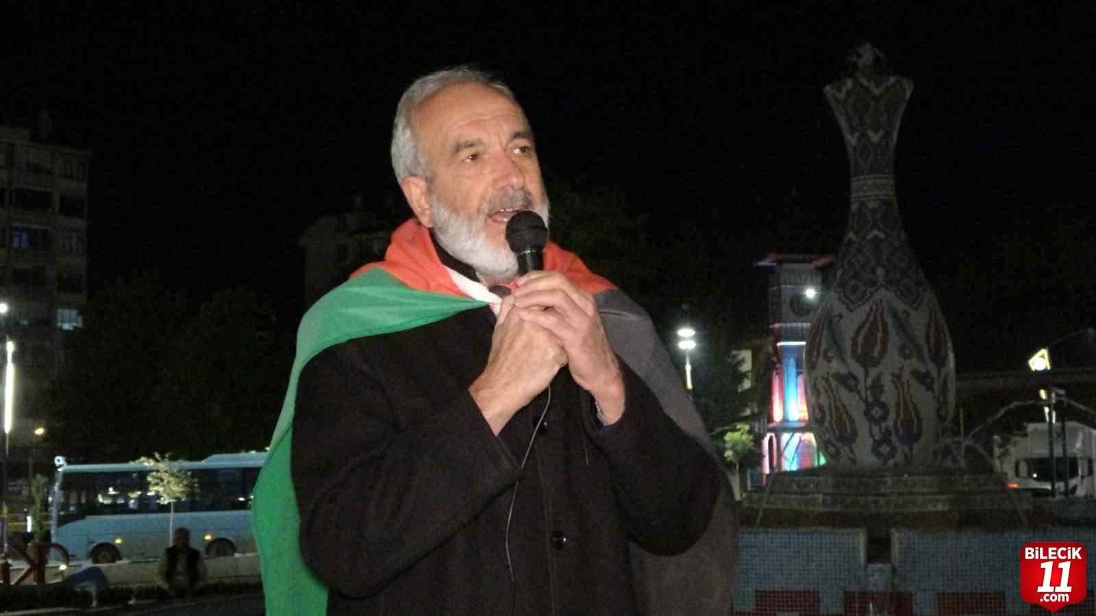 Zafer Meydanı’nda toplanan STK temsilcileri, yaptıkları basın açıklamasında İsrail’e tepki gösterip Filistin’e destek çağrısında bulundu. STK’lar adına basın açıklaması yapan emekli öğretmen Ahmet Meşe, “İsrail ne uluslararası hukuk tanıyor, ne insanlık tanıyor. Bunların gözü dönmüş, bu akşam da hastaneleri vurmaya başladı. 5 bin kişinin bulunduğu hastane bombalandı. 500 şehidimiz var. Bunlar ancak güçten anlar” dedi.