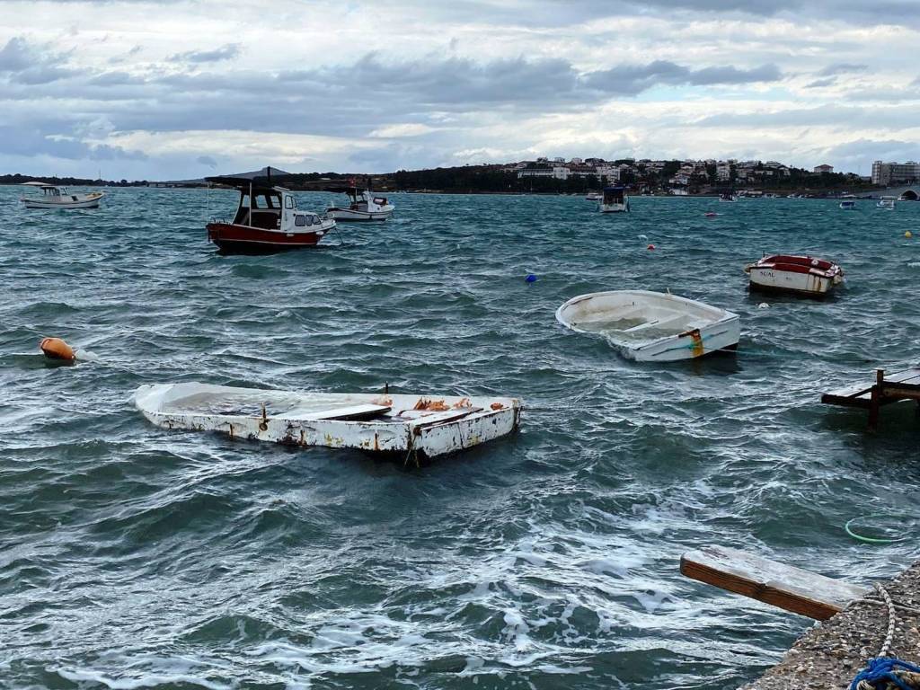 Kuzey Ege'de etkili olan lodos, Balıkesir'in Ayvalık ilçesinde kıyıda bağlı bazı teknelerin zarar görmesine yol açtı.