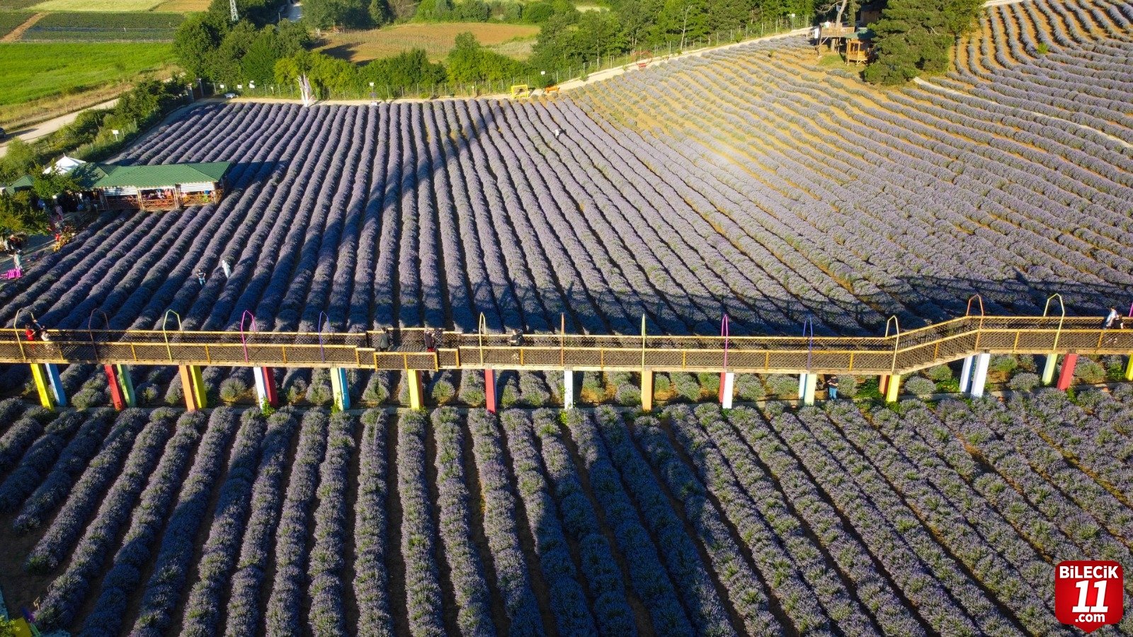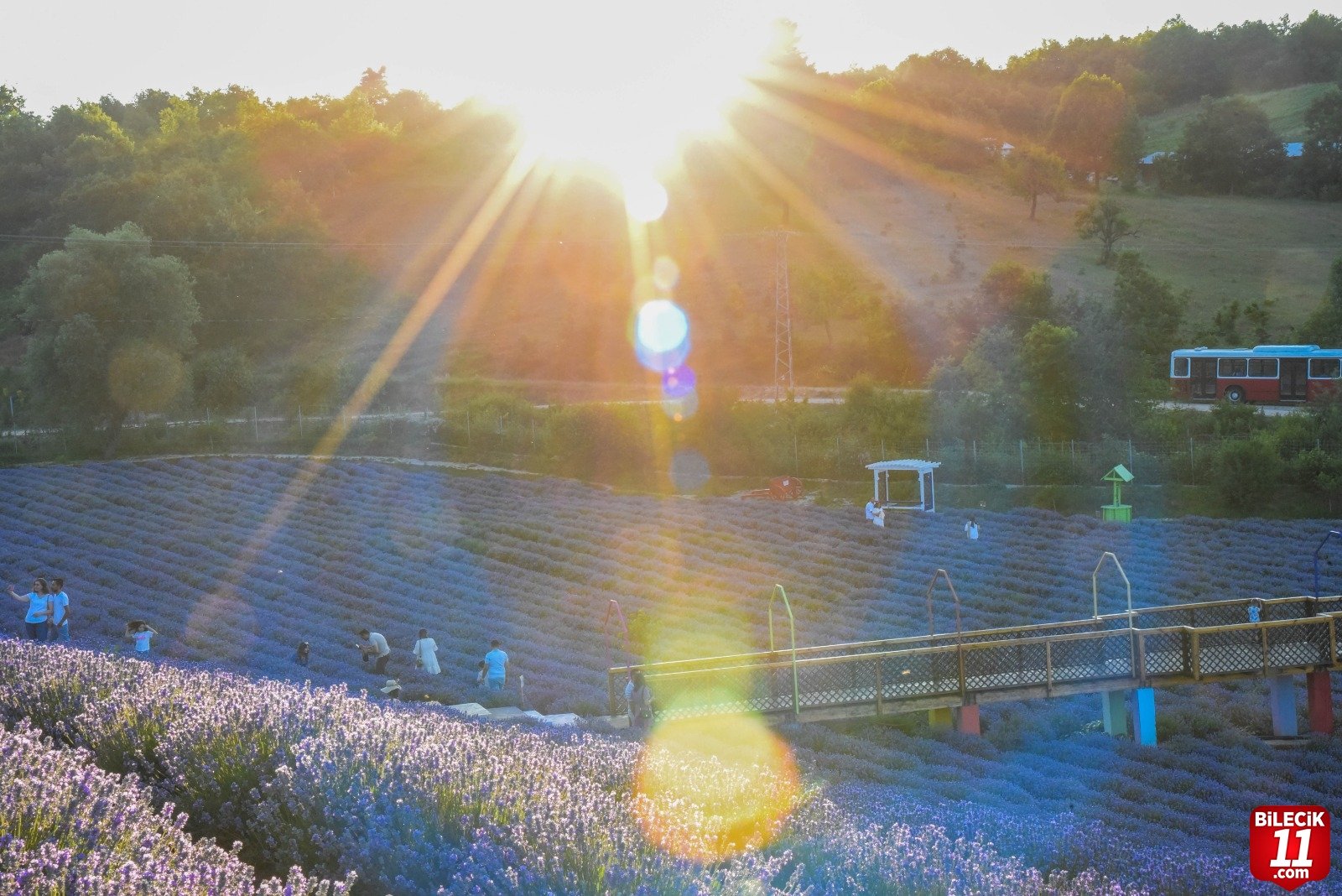 Bilecik Ticaret ve Sanayi Odası Meclis Başkanı Şermin Kahraman tarafından 40 dönümlük arazide oluşturulan lavanta bahçesi, özellikle gün batımını lavantalar arasında izlemek için gelenlerle doluyor.