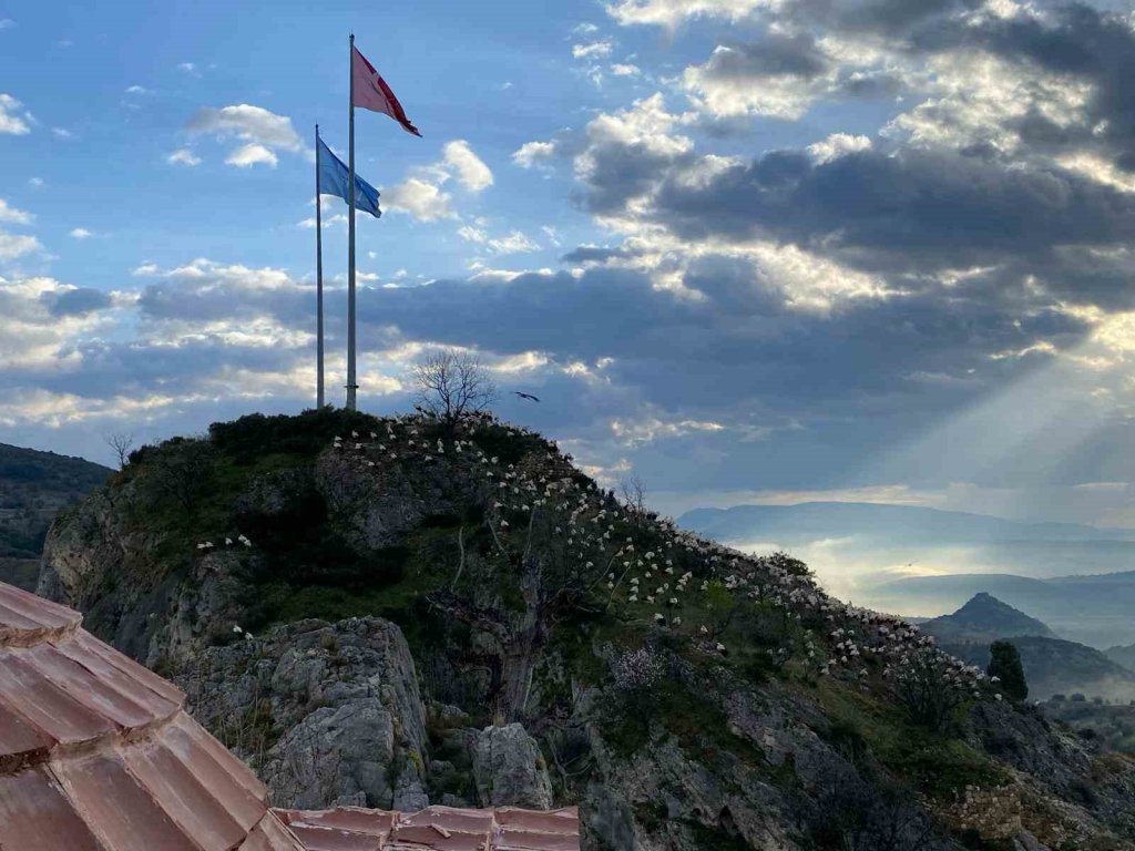 Baharın gelmesiyle güneyden kuzeye göç etmeye başlayan leylekler, Bilecik’teki Şeyh Edebali Türbesi’nde de mola verdi.
