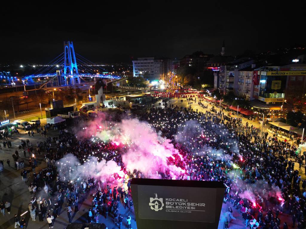 Trendyol 1. Lig'in 12. haftasında Yeni Sakarya Atatürk Stadı'nda oynanan "Marmara derbisi"ni statta izleyemeyen Kocaelispor taraftarları, müsabakayı Kocaeli Büyükşehir Belediyesince İzmit kent meydanına kurulan dev ekrandan takip etti.