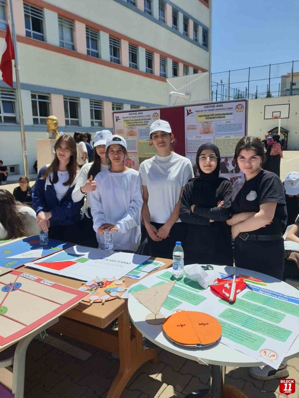 Bilgi Evi’nde yer alan Matematik Müzesi’ndeki geometrik şekiller ve matematikle ilgili görsellerden faydalanarak, proje üreten öğrenciler, okul bahçesinde kurdukları stantlarda projelerini anlattılar.