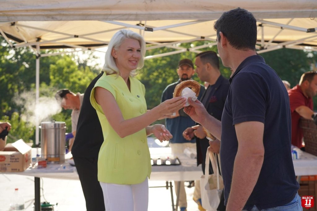 Belediye Başkanı Melek Mızrak Subaşı bayram sonrası mesaisine, işe giden çalışanlara simit ve çay ikram ederek başladı.