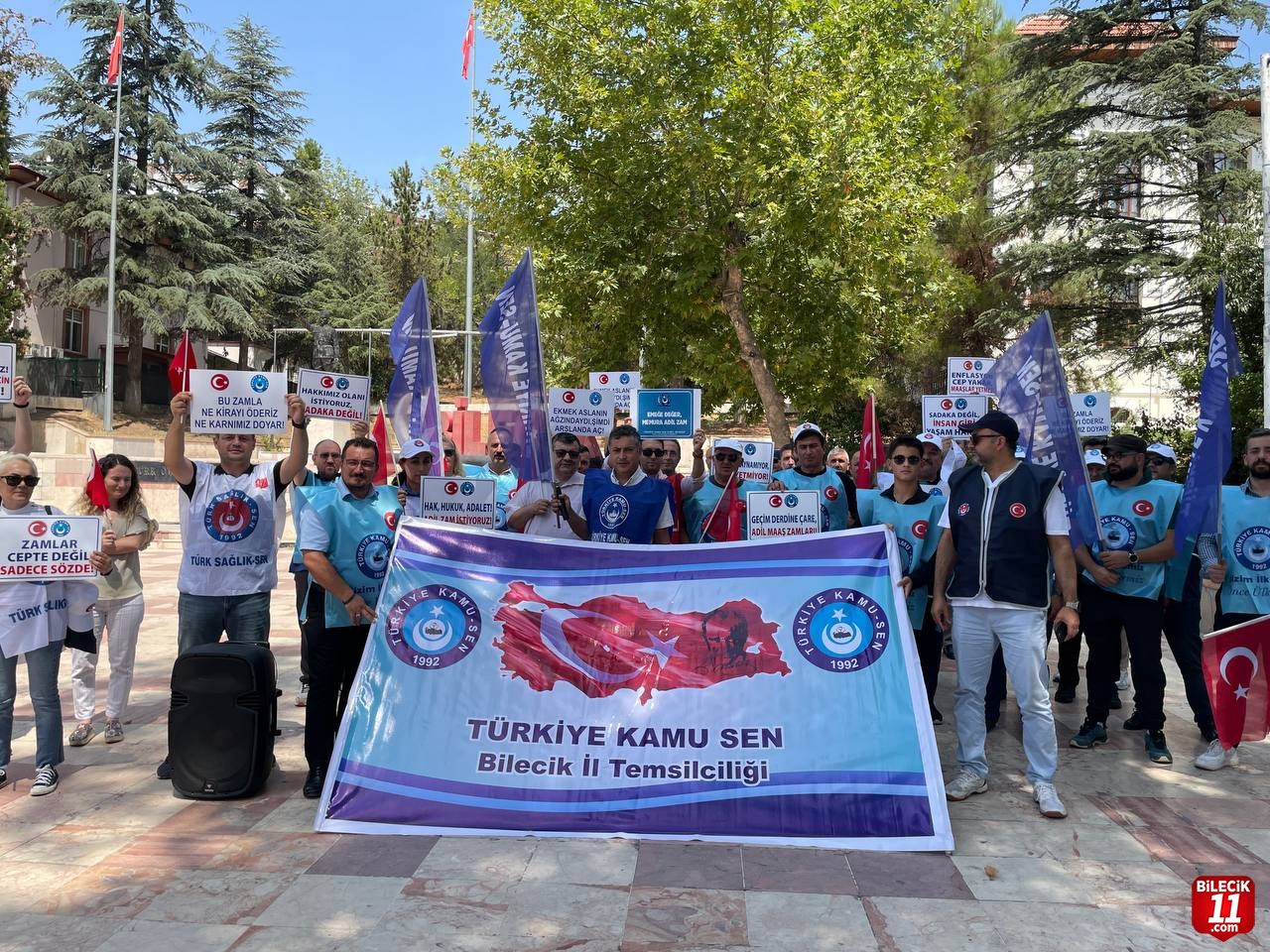 Türkiye Kamu-Sen üyeleri Bilecik’te yaptıkları basın açıklaması ile 8. Dönem toplu sözleşme görüşmelerinde verilen zam oranını protesto etti.