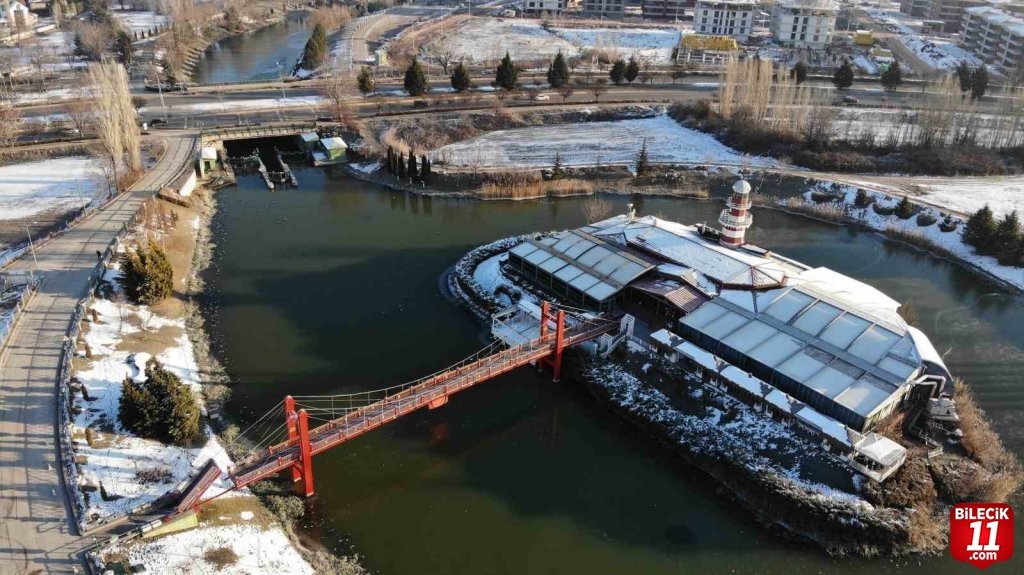 Porsuk Çayı’nın yüzeyinde oluşan buz tabakası havadan görüntülendi. – İHA