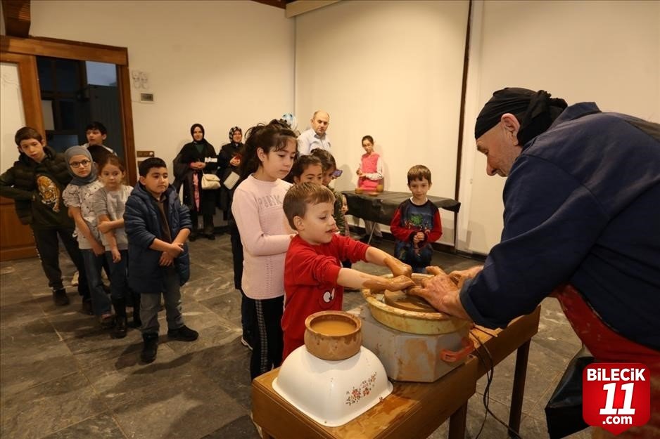 Etkinlik sırasında çömlek yapımının inceliklerini ustasından öğrenen minikler, toprağa şekil verirken de maharetlerini sergiledi.