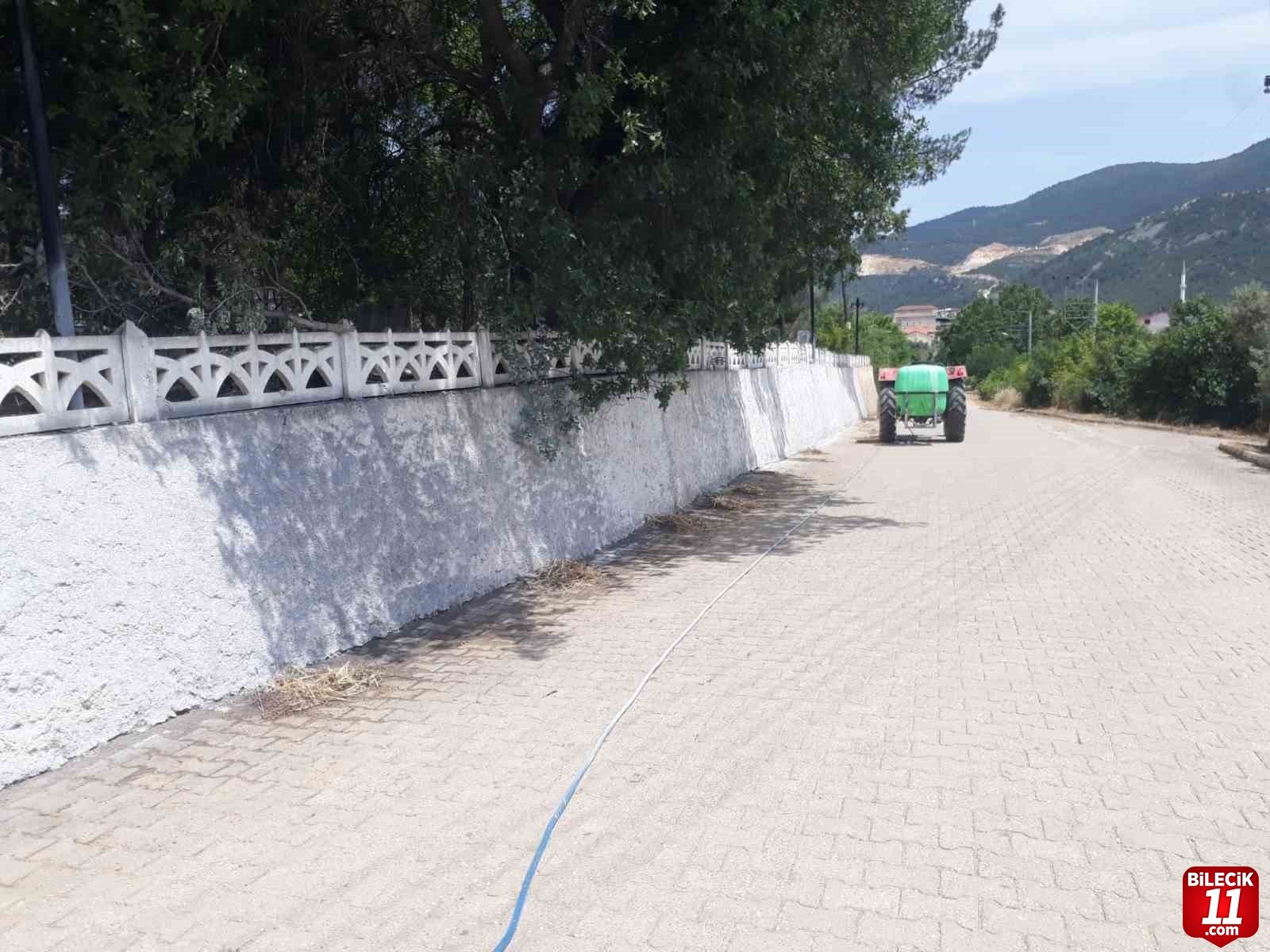Ekipler ayrıca itfaiye yardımı ile cadde ve sokaklarını baştan aşağı yıkayarak, kaldırımlarda uzayan otları temizledi. – İHA